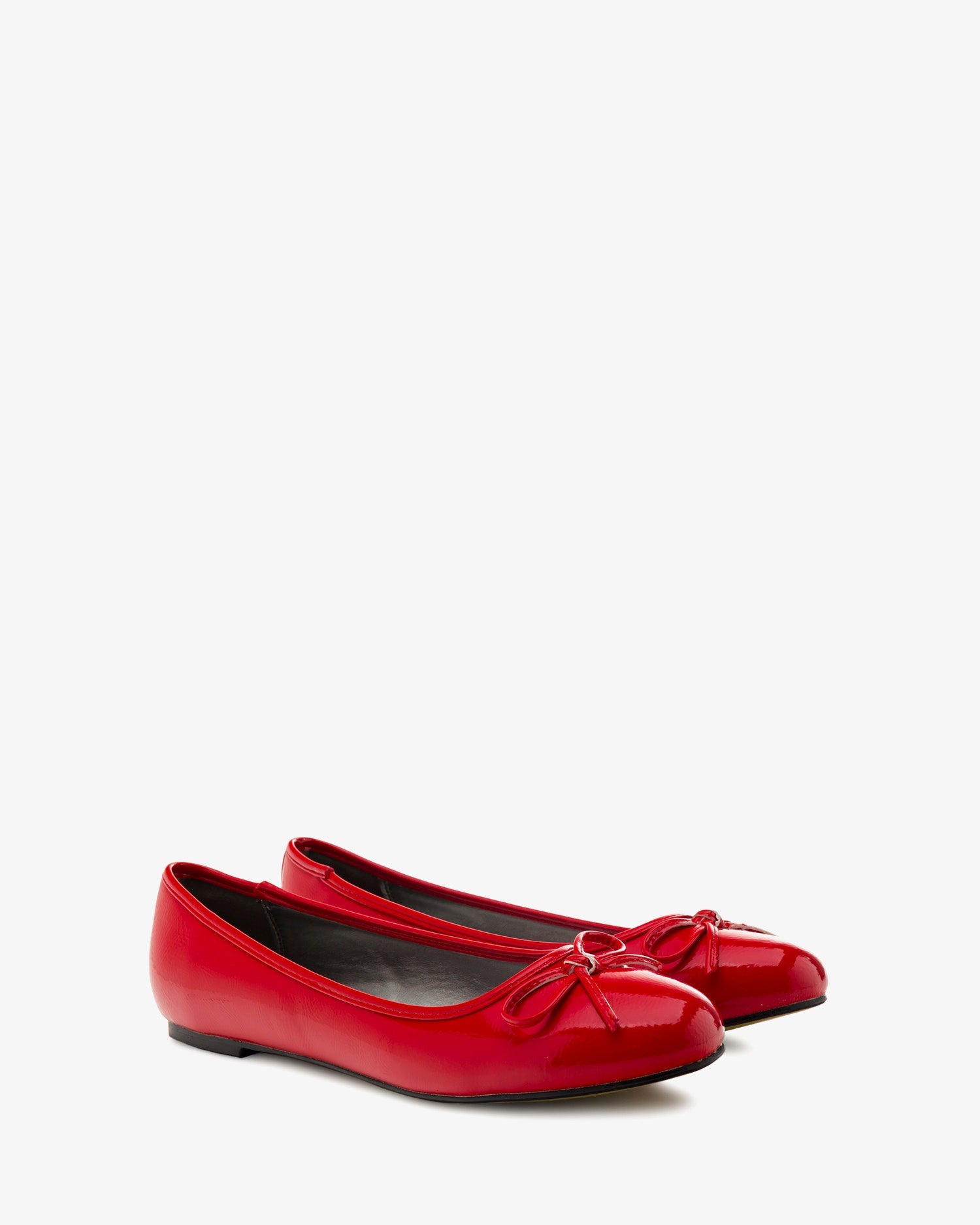 Classic red patent leather ballet flats with trim and a matching sailor bow. Mini heel of 0.5 cm. Large sizes from 42 to 46. These ballet flats run a little large.
