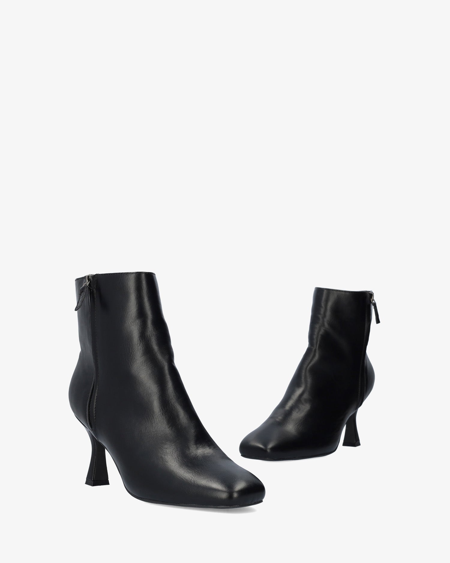 Ankle boots with a soft black kitten heel. Low shaft with a matching zip closure on the inner side. Square toe. Tonal covered heel: 8.3 cm for smaller sizes (32-35). 8.7 cm heel for larger sizes (42-45).