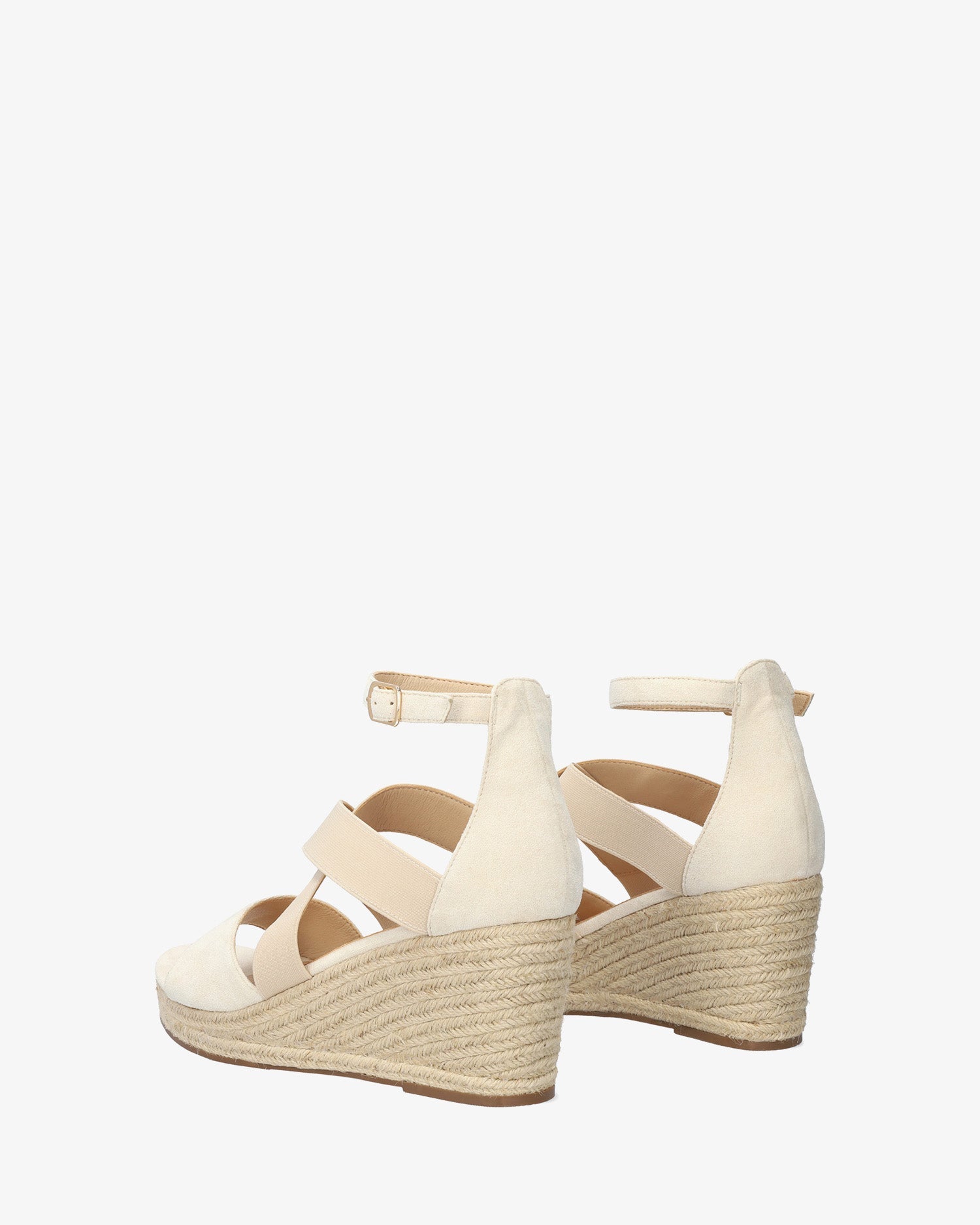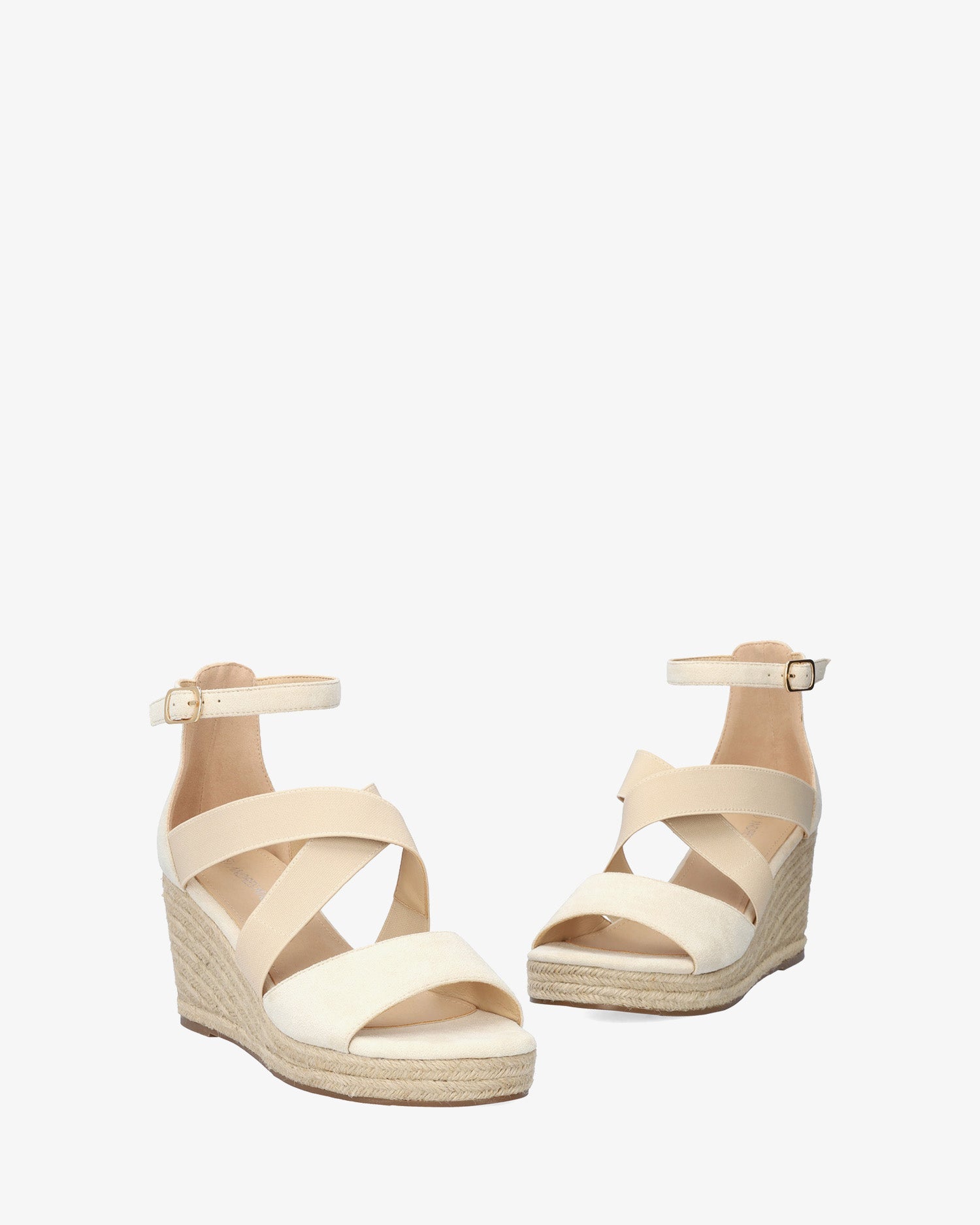 Alpargatas en simil ante de color Crema con cuña. Diseño de tira ancha al tono en la parte delantera y con tiras elásticas cruzadas sobre el empeine al tono. Talonera cubierta en símil ante Crema. Cierre de hebilla con pulsera al tono en el tobillo. Punta redondeada y abierta. Cuñas y plataforma delantera en yute. Puntera abierta. Cuñas y plataforma delantera en yute. Cuña de 7cm y plataforma de 3cm para las tallas pequeñas de la 32 a la 35. Cuña de 8cm y plataforma de 3cm para las tallas grandes de la 42 a la 45. Este modelo calza grande, se recomienda coger una talla menos de la habitual.