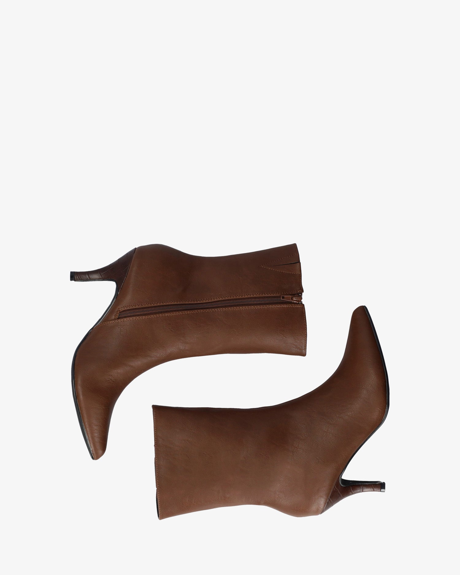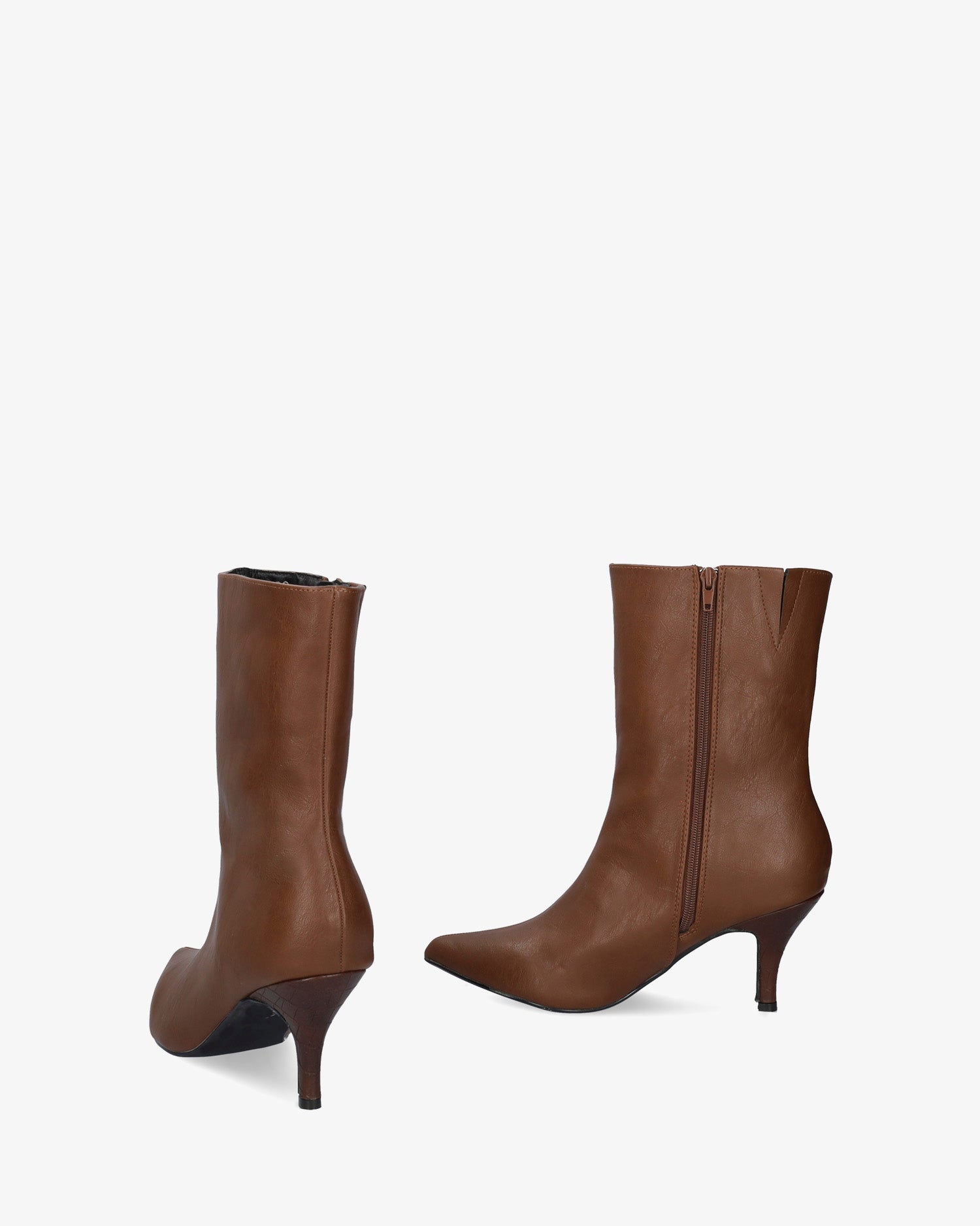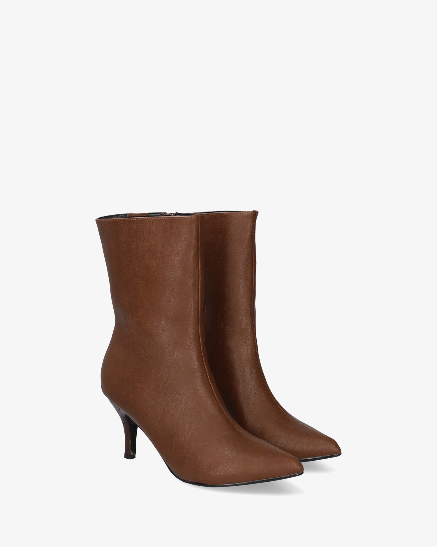 Botín en soft de color Marron. Pespunte decorativo de la puntera hasta lo alto de la caña. Acabado en punta fina. Cierre de cremallera al tono en la parte interior. Tacón fino medio forrado en soft coco al tono de 6,5 cm para las tallas pequeñas de la 32 a la 35. Tacón de 8 cm para las tallas grandes de la 42 a la 45.