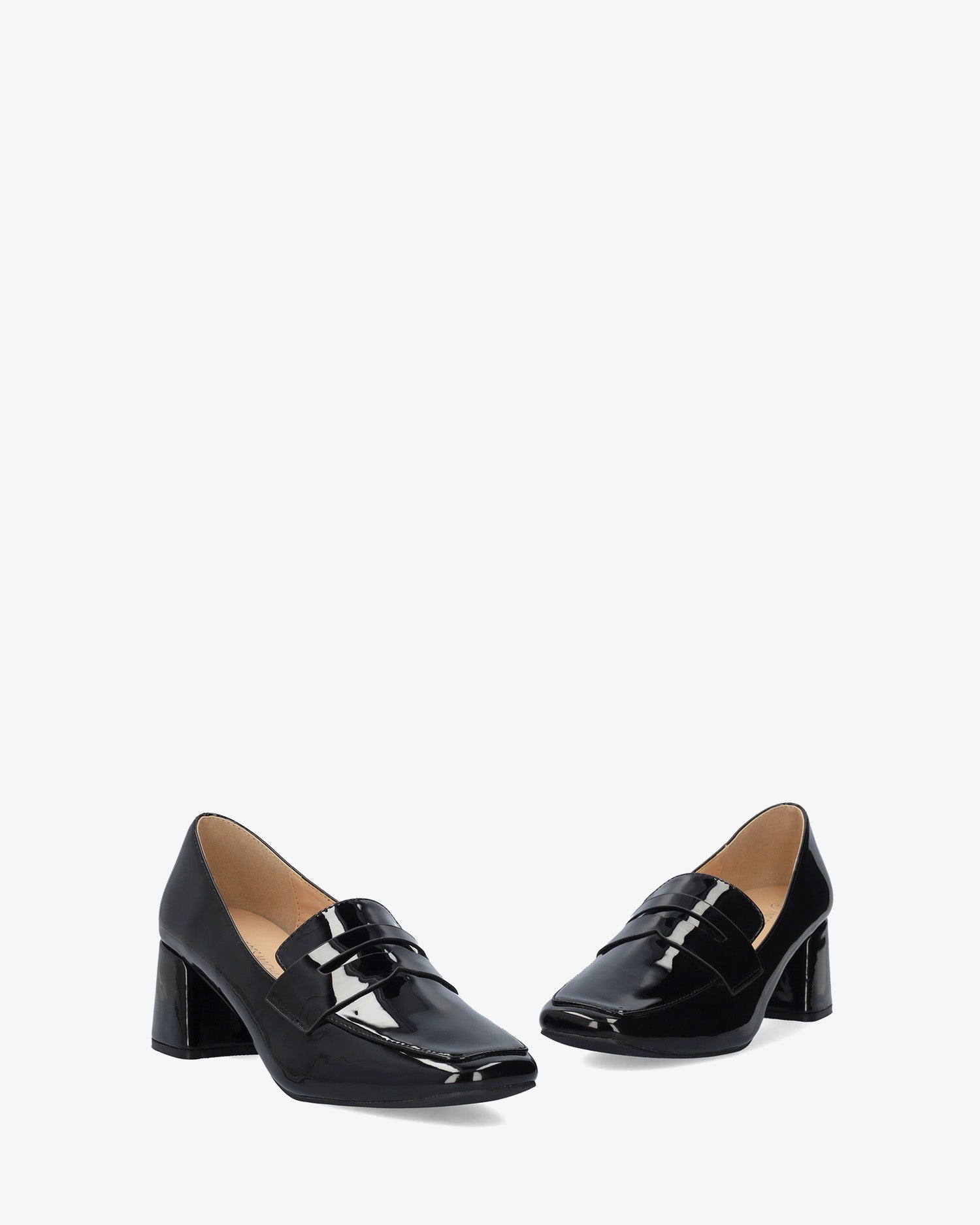 Mocasín con tacón en charol negro