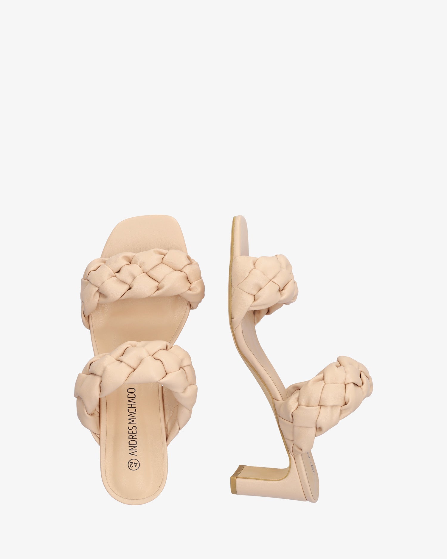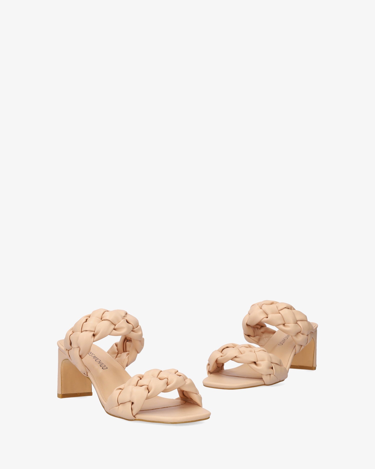 Mule en soft color Maquillaje con tacón semi-cuadrado. Diseño destalonado con tiras anchas trenzadas y en relieve en la parte delantera y sobre el empeine al tono. Puntera abierta y cuadrada. Tacón de 7,5 cm para las tallas pequeñas de la 32 a la 35. Tacón de 8 cm para las tallas grandes de la 42 a la 45.