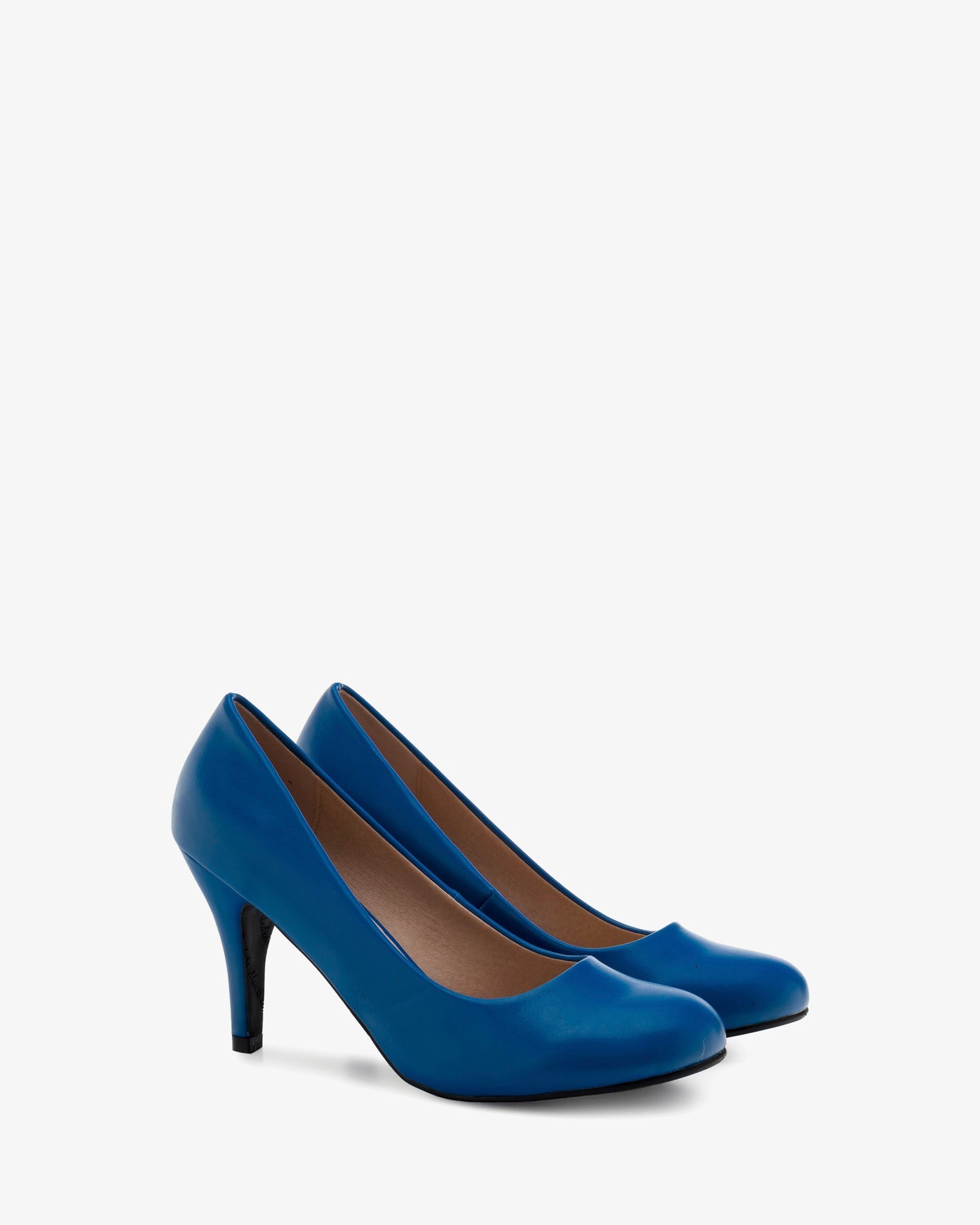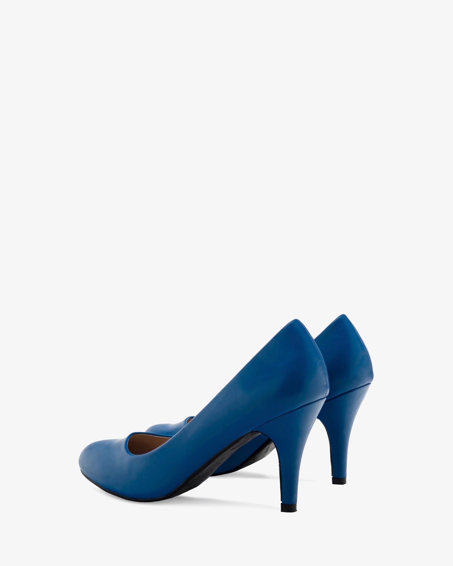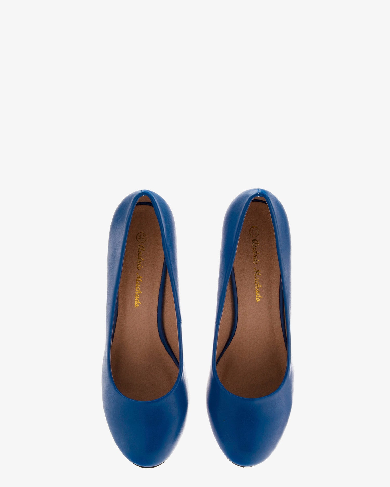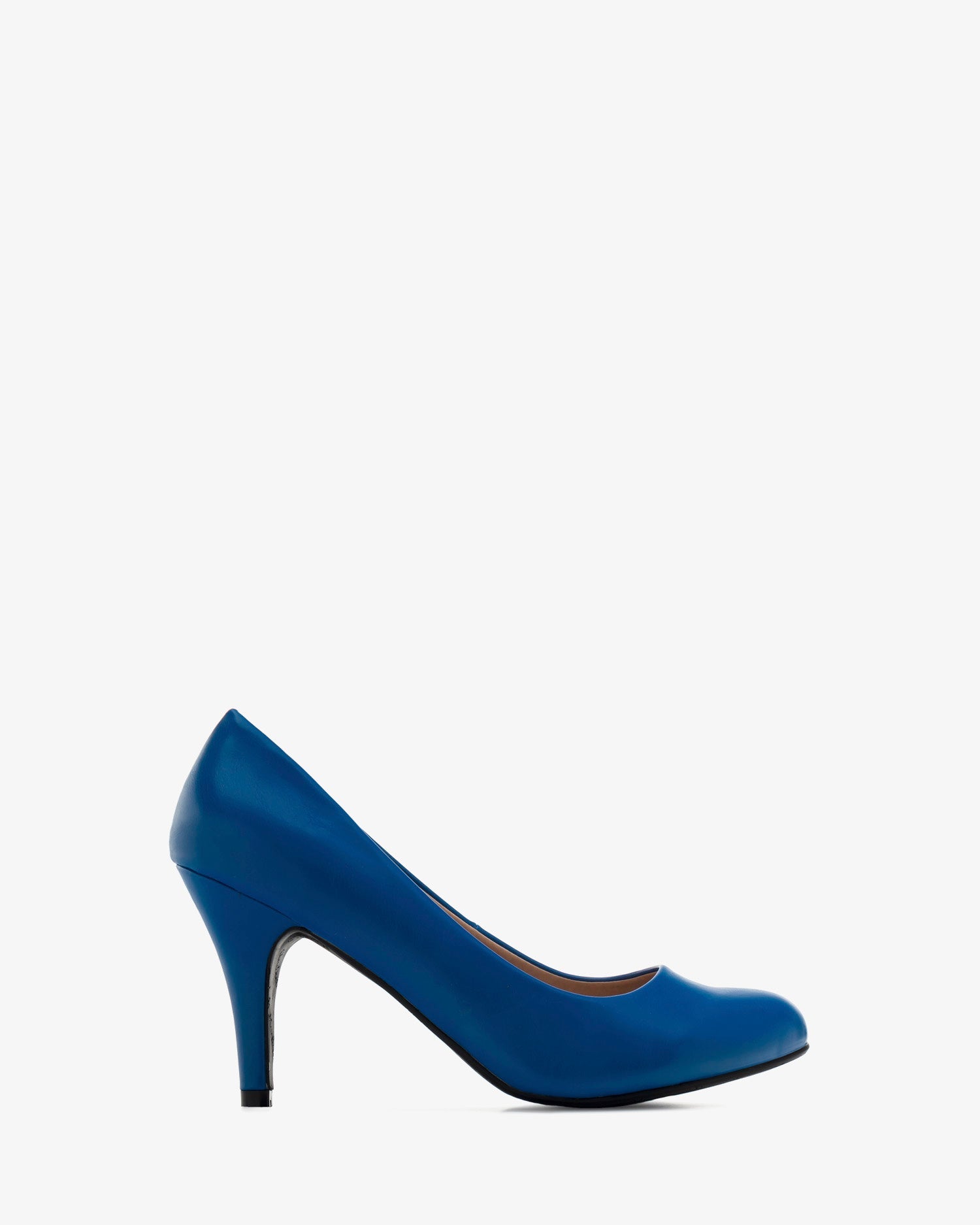 Salón clásico en soft azulón. Horma y tacón clásico. Puntera redondeada y tacón fino forrado al tono para todas las tallas. Tallas Pequeñas de la 32 a la 35 con tacón de 9 cm. Tallas Medianas de la 36 a la 41 con tacón de 9,5 cm. Tallas Grandes de la 42 a la 46 con tacón de 10 cm. Este modelo calza pequeño, se recomienda coger una talla más de la habitual.
