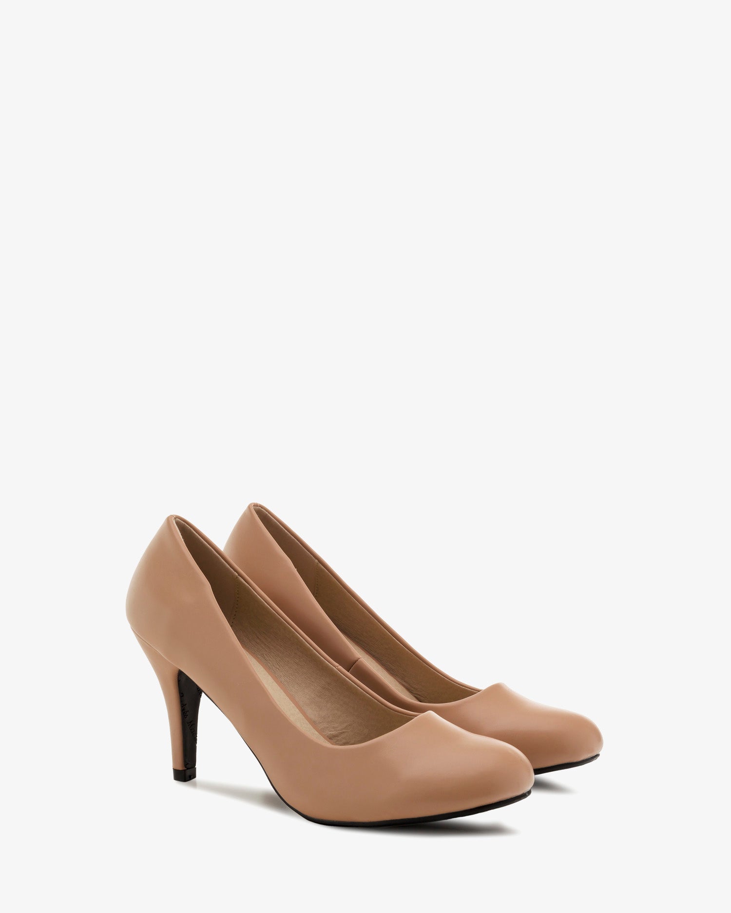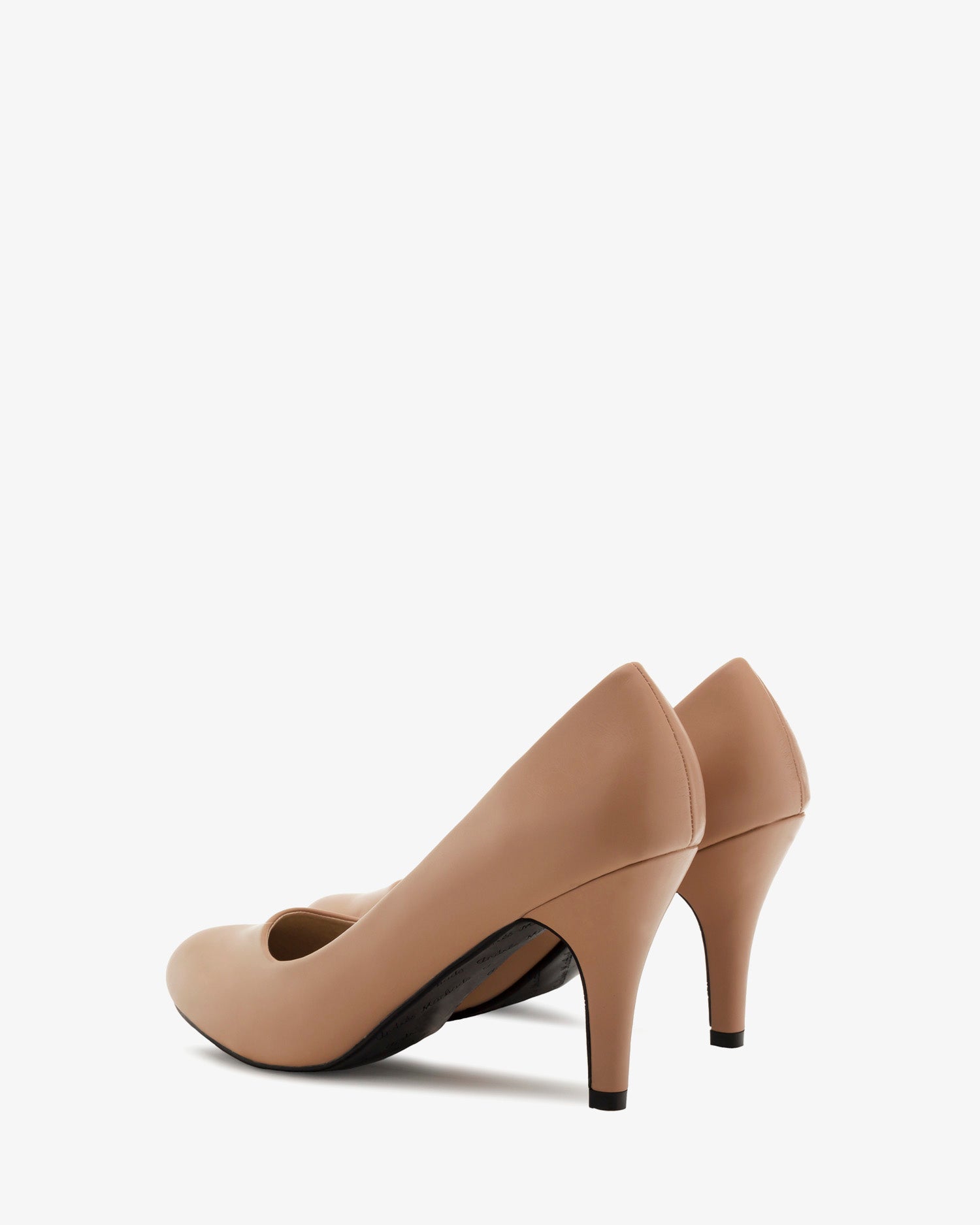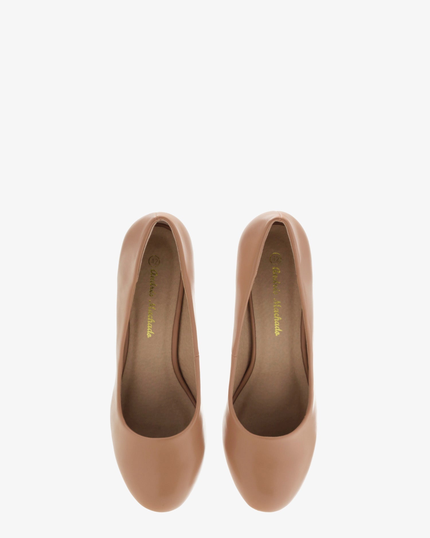 Salón clásico en soft maquillaje. Horma y tacón clásico. Puntera redondeada y tacón fino forrado al tono para todas las tallas. Tallas Pequeñas de la 32 a la 35 con tacón de 9 cm. Tallas Medianas de la 36 a la 41 con tacón de 9,5 cm. Tallas Grandes de la 42 a la 46 con tacón de 10 cm. Este modelo calza pequeño, se recomienda coger una talla más de la habitual.