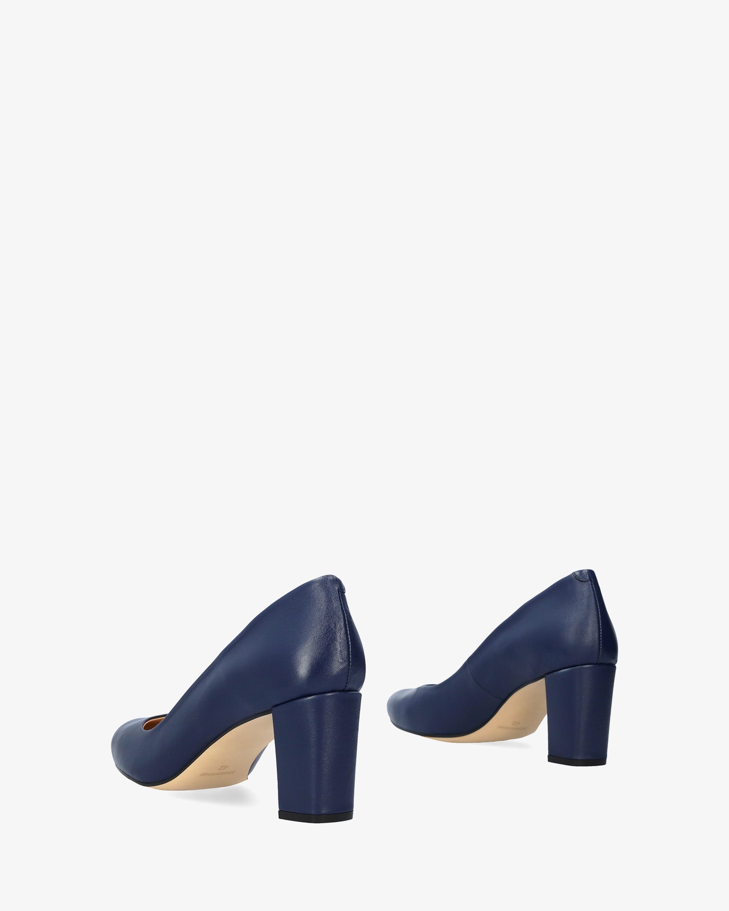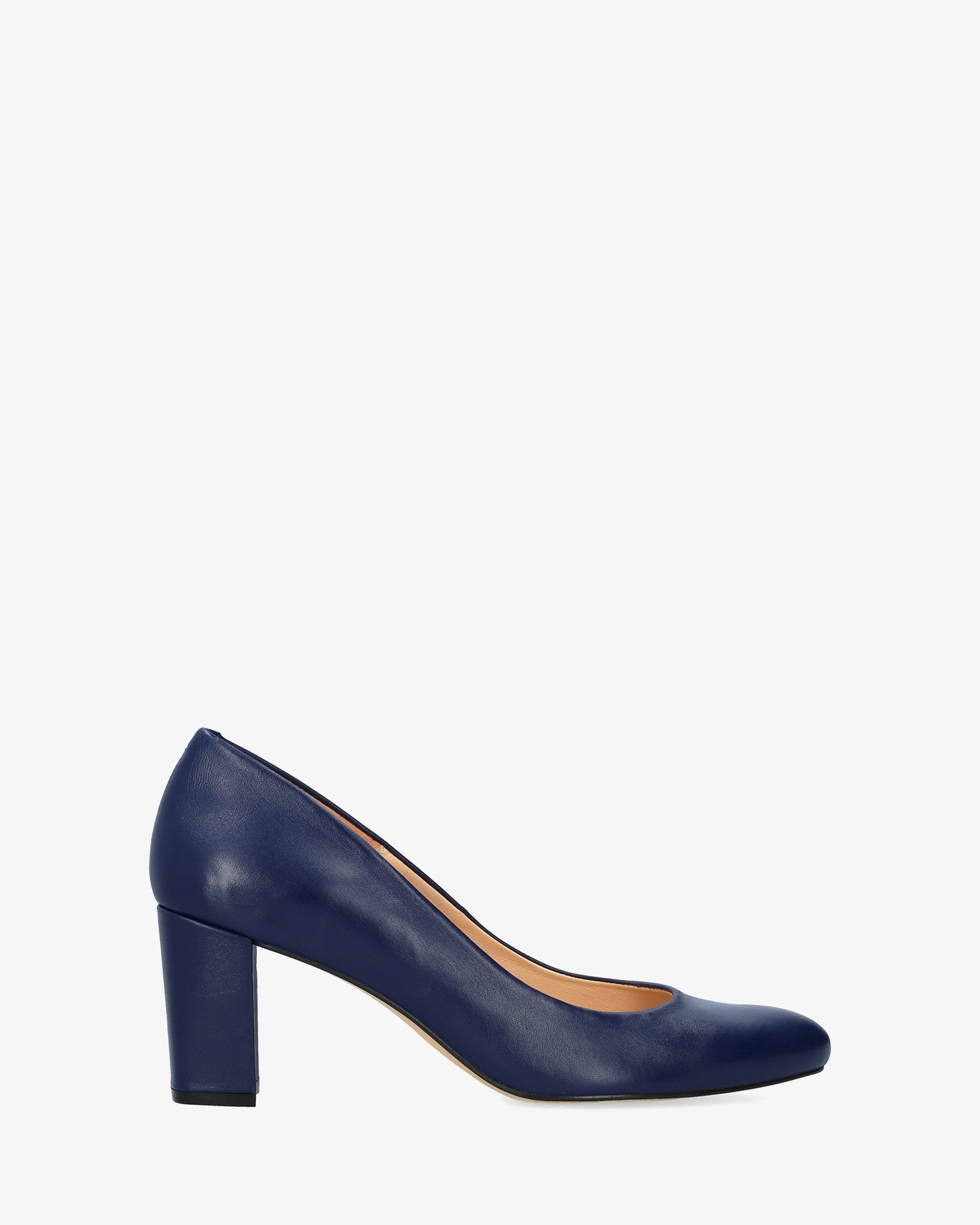 Salón en Piel de color Azúl Marino. Forro y plantilla interior en Piel de color Rosa. Tacón ancho forrado al tono de 7 cm para las tallas pequeñas de la 32 a la 35. Tacón de 7,5 cm para las tallas medianas de la 36 a la 41. Tacón de 8cm para las tallas grandes de la 42 a la 45. Fabricación Española. Este modelo calza grande, se recomienda coger una talla menos de la habitual.