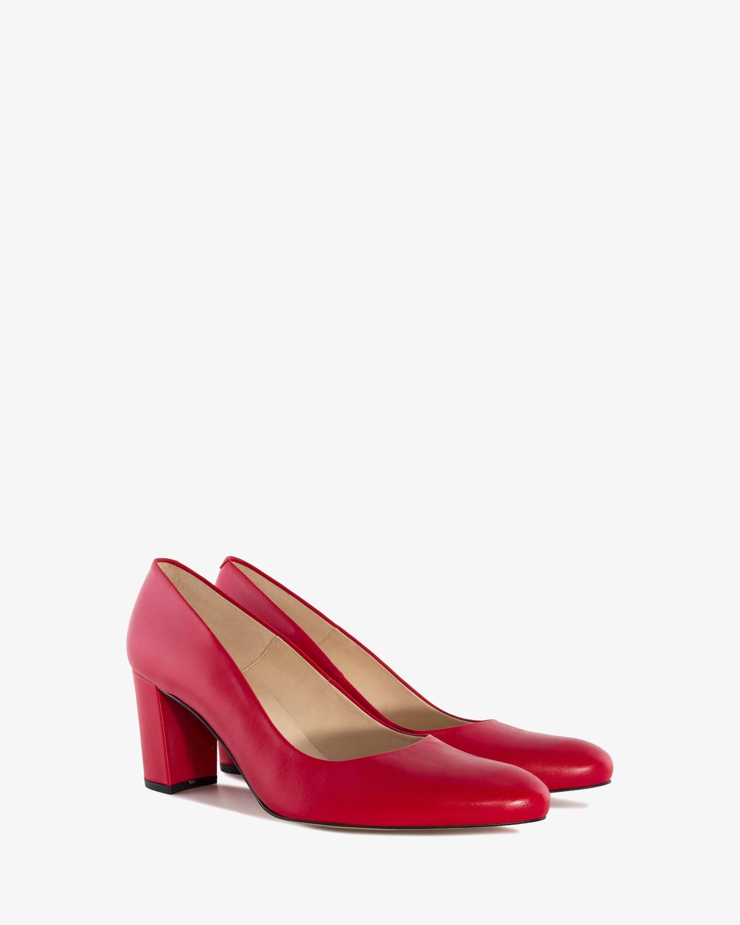 Salón en Piel de color Rojo. Forro y plantilla interior en Piel de color Camel. Tacón ancho forrado al tono de 7 cm para las tallas pequeñas de la 32 a la 35. Tacón de 7,5 cm para las tallas medianas de la 36 a la 41. Tacón de 8 cm para las tallas grandes de la 42 a la 45. Fabricación Española. Este modelo calza grande, se recomienda coger una talla menos de la habitual.