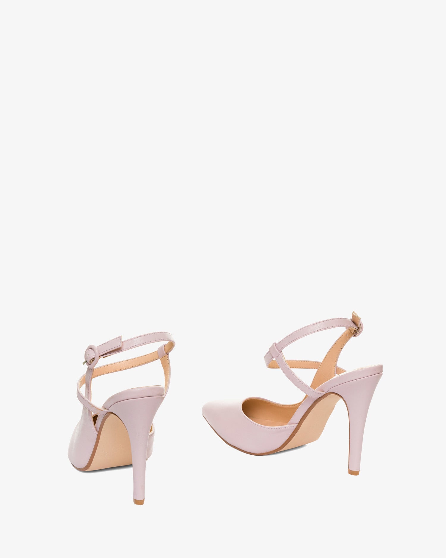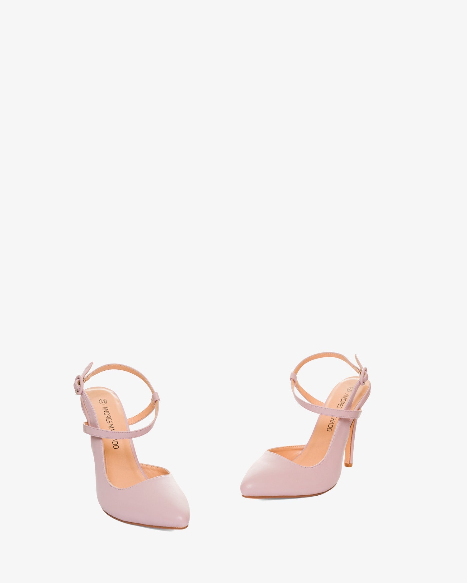 Salón de punta fina en Soft de color Malva con puntera cerrada al tono y apertura lateral interior. Diseño destalonado y cierre de pulsera al tono con hebilla metálica. Tacón de 10 cm para las tallas pequeñas de la 32 a la 35. Tacón de 12 cm para las tallas grandes de la 42 a la 45.