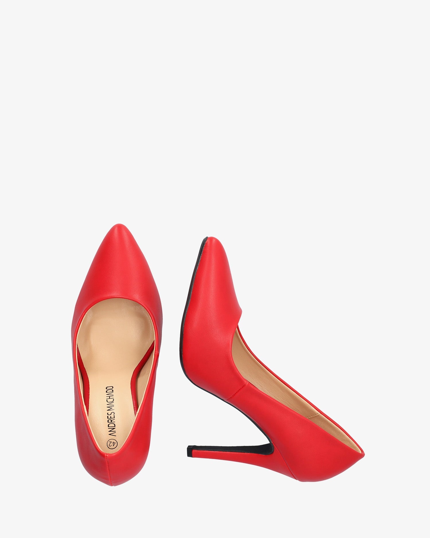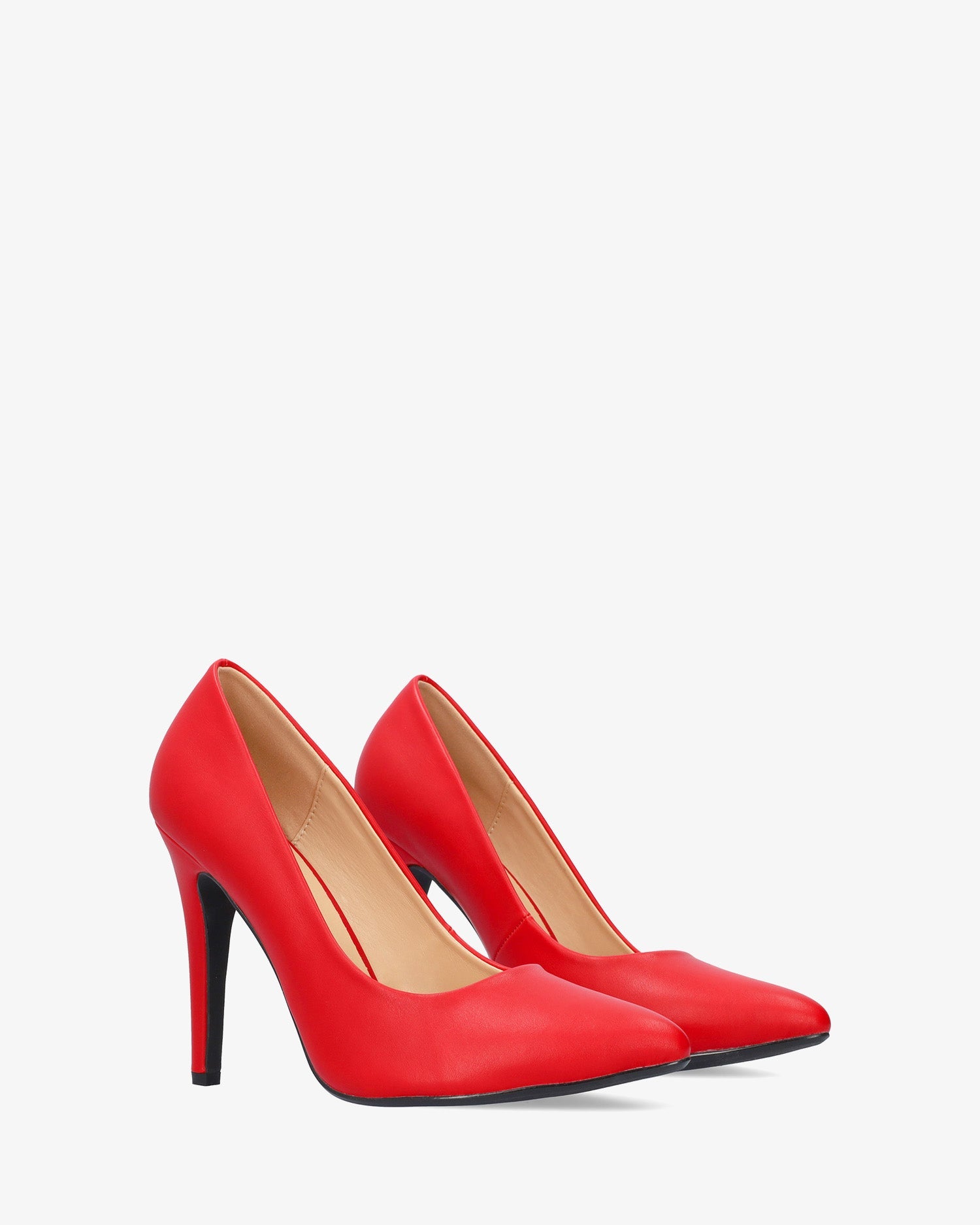 Salón con tacón alto en soft de color rojo. Acabado en punta fina. Tacón fino forrado al tono de 9 cm de alto para las tallas pequeñas de la 32 a la 35. Tacón de 11 cm de alto para las tallas grandes de la 43 a la 46.