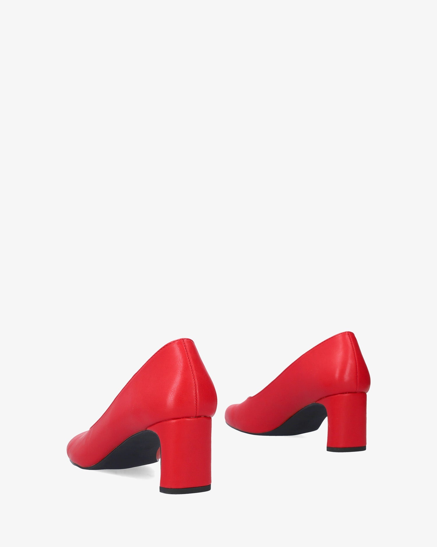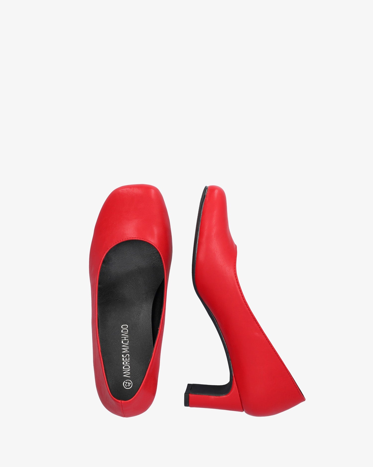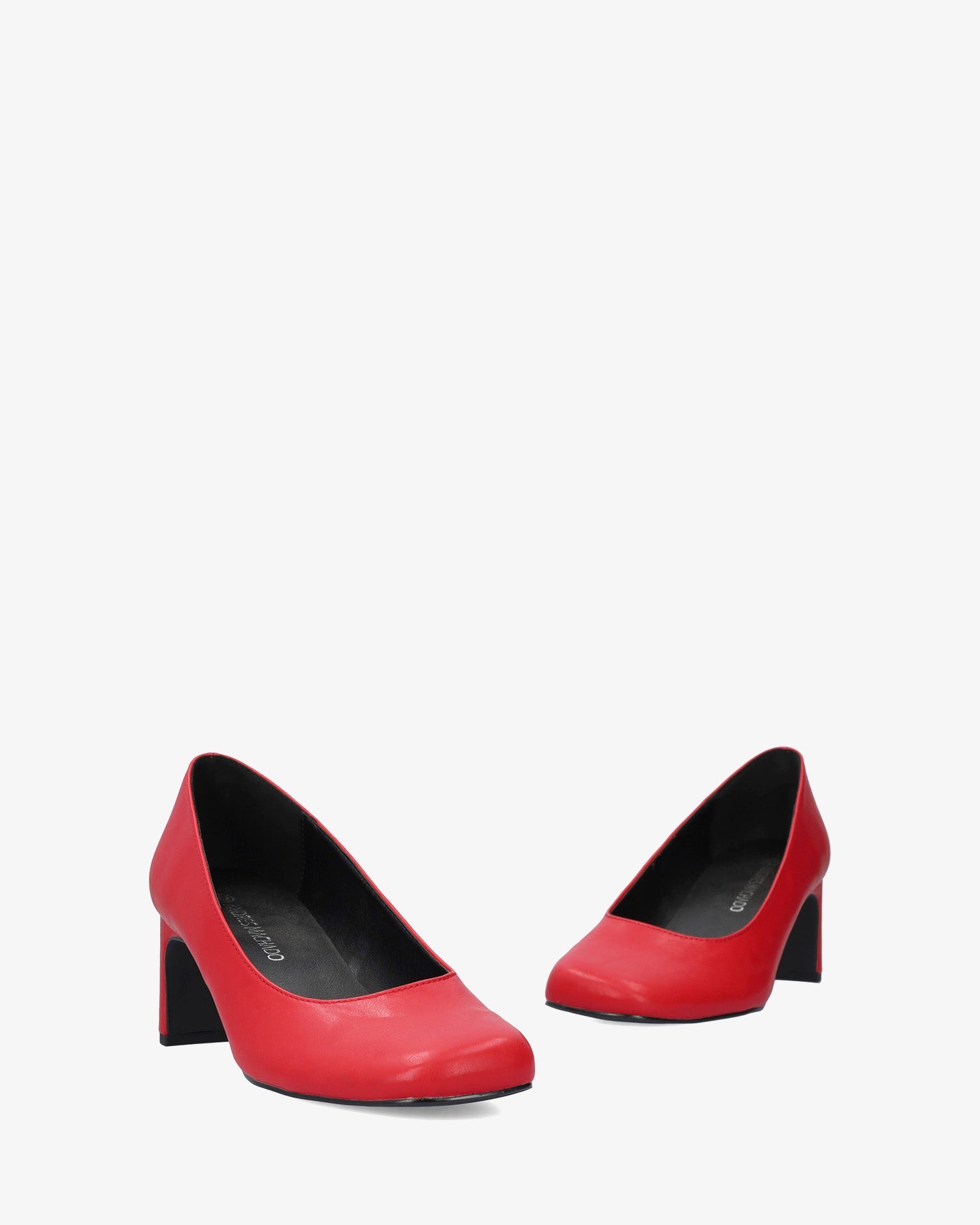 Salón con tacón en soft de color rojo. Acabado en punta cuadrada. Tacón semi-cuadrado forrado al tono de 7 cm de alto para las tallas pequeñas de la 32 a la 35. Tacón de 7 cm de alto para las tallas grandes de la 42 a la 45.
