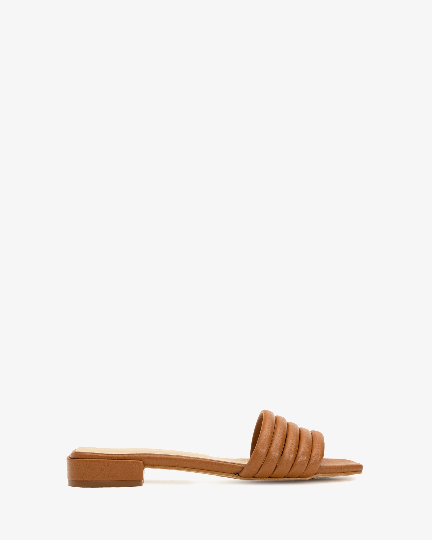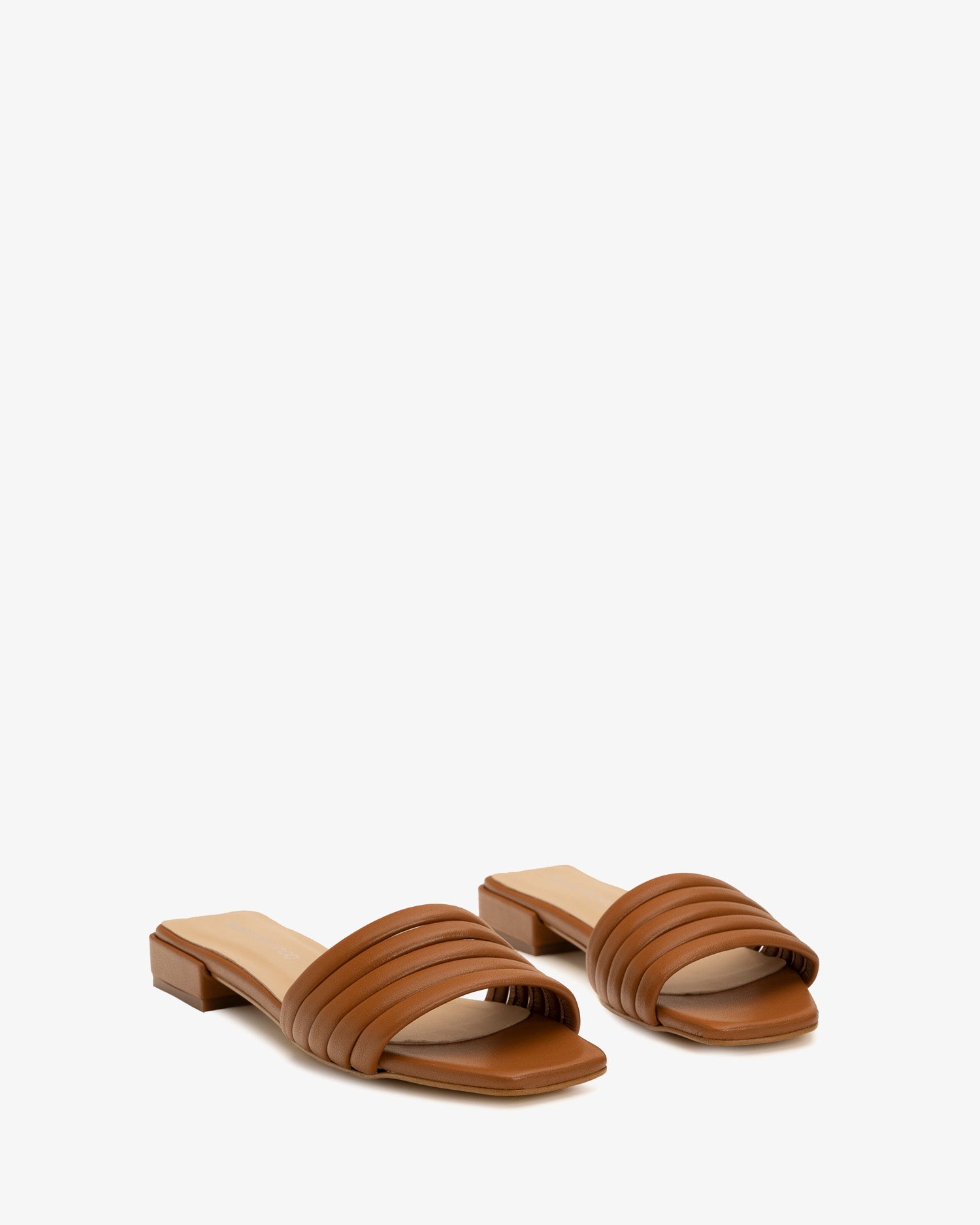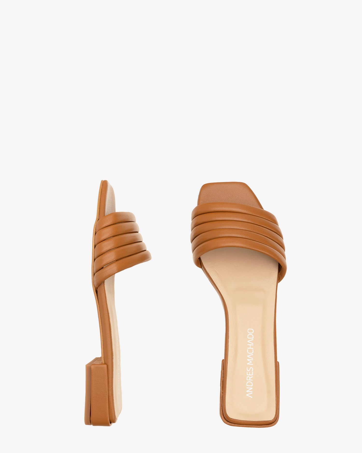 Sandalia plana en piel de color Cuero. Diseño de tiras anchas en piel lisa de color Cuero en el empeine. Acabado en punta cuadrada y abierta. Tacón bloque forrado al tono de 2 cm para las tallas pequeñas de la 32 a la 35. Tacón de 2 cm para las tallas medianas de la 36 a la 41. Tacón de 2 cm para las tallas grandes de la 42 a la 45. Fabricación en España.
