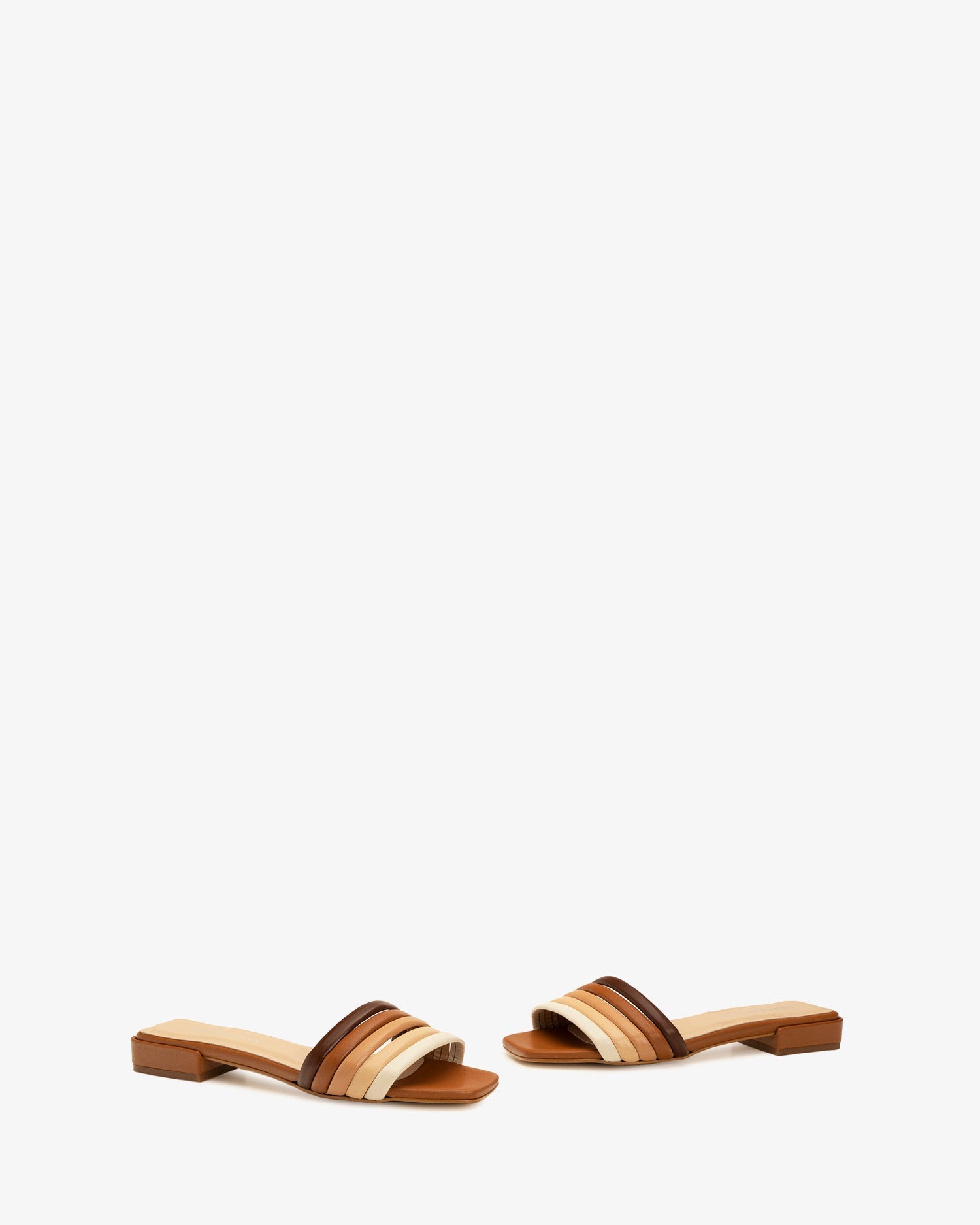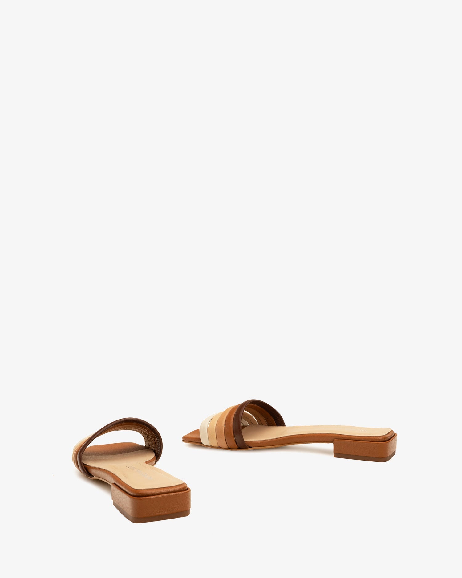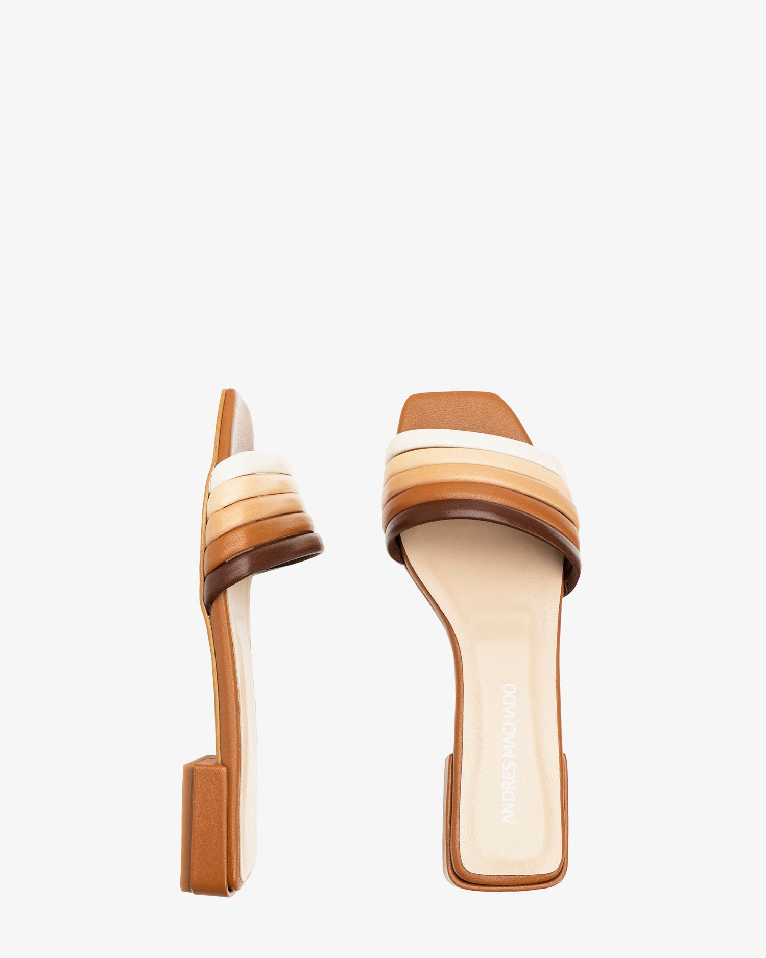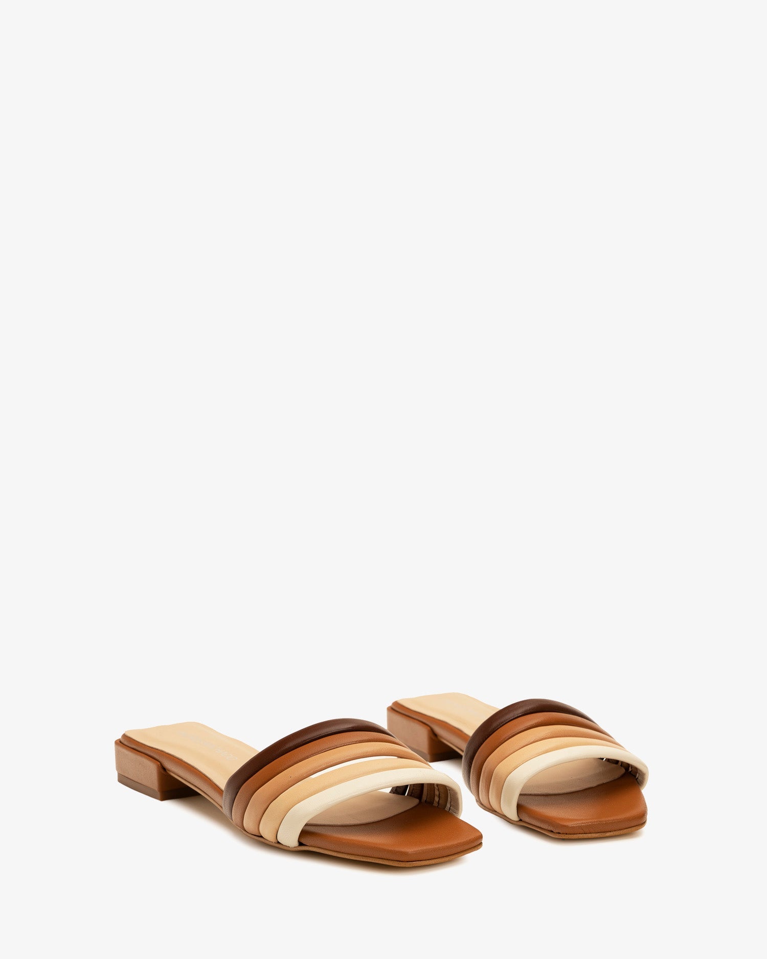 Sandalia plana en piel multicolor. Diseño de tiras anchas en piel lisa de varios colores en el empeine. Acabado en punta cuadrada y abierta. Tacón bloque forrado al tono de 2 cm para las tallas pequeñas de la 32 a la 35. Tacón de 2 cm para las tallas medianas de la 36 a la 41. Tacón de 2 cm para las tallas grandes de la 42 a la 45. Fabricación en España.