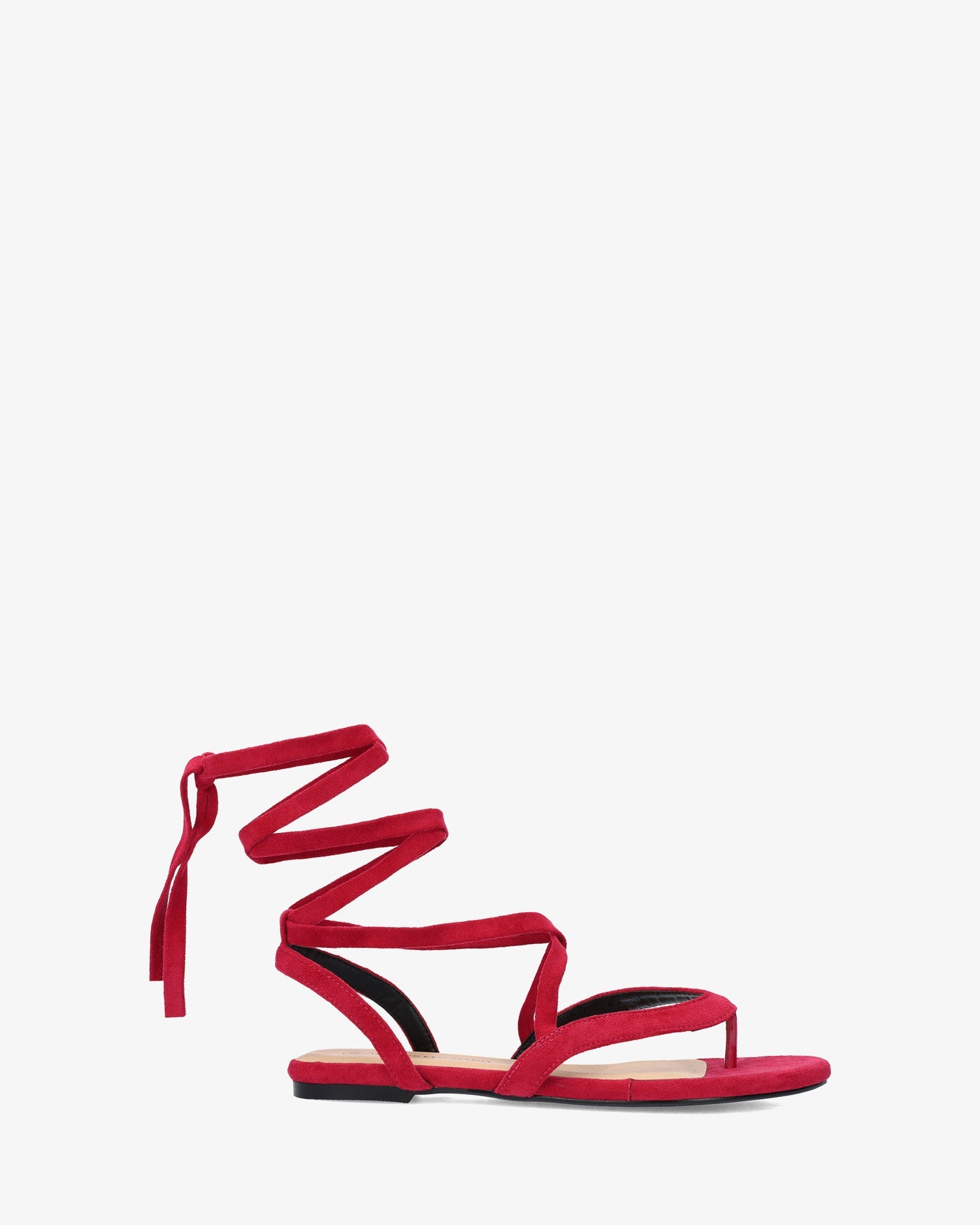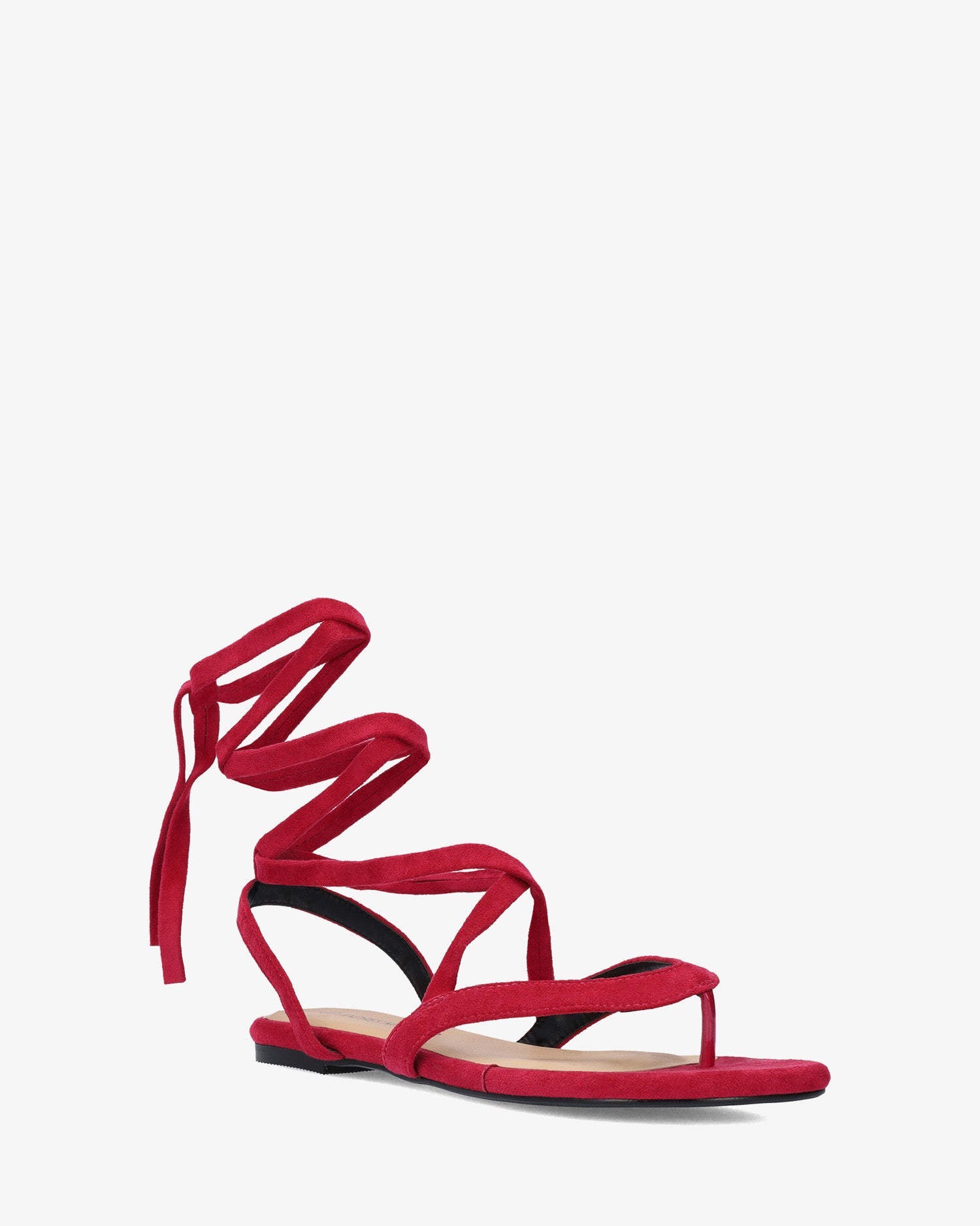 Sandalia plana en símil ante de color Fucsia. Diseño destalonado con acabado en sandalia de dedo con cierre de cordones atados alrededor del tobillo al tono. Puntera redondeada y abierta. Tallas grandes de la 42 a la 45.