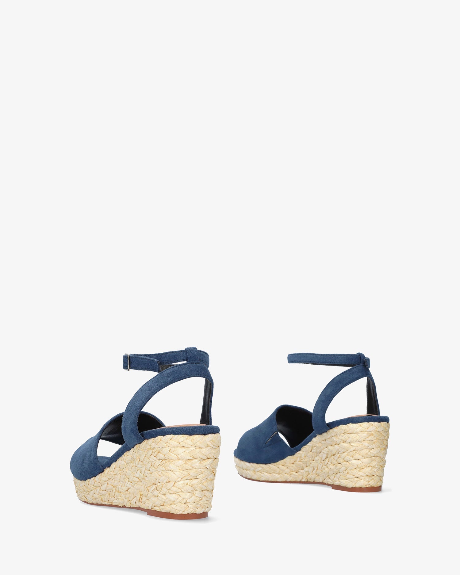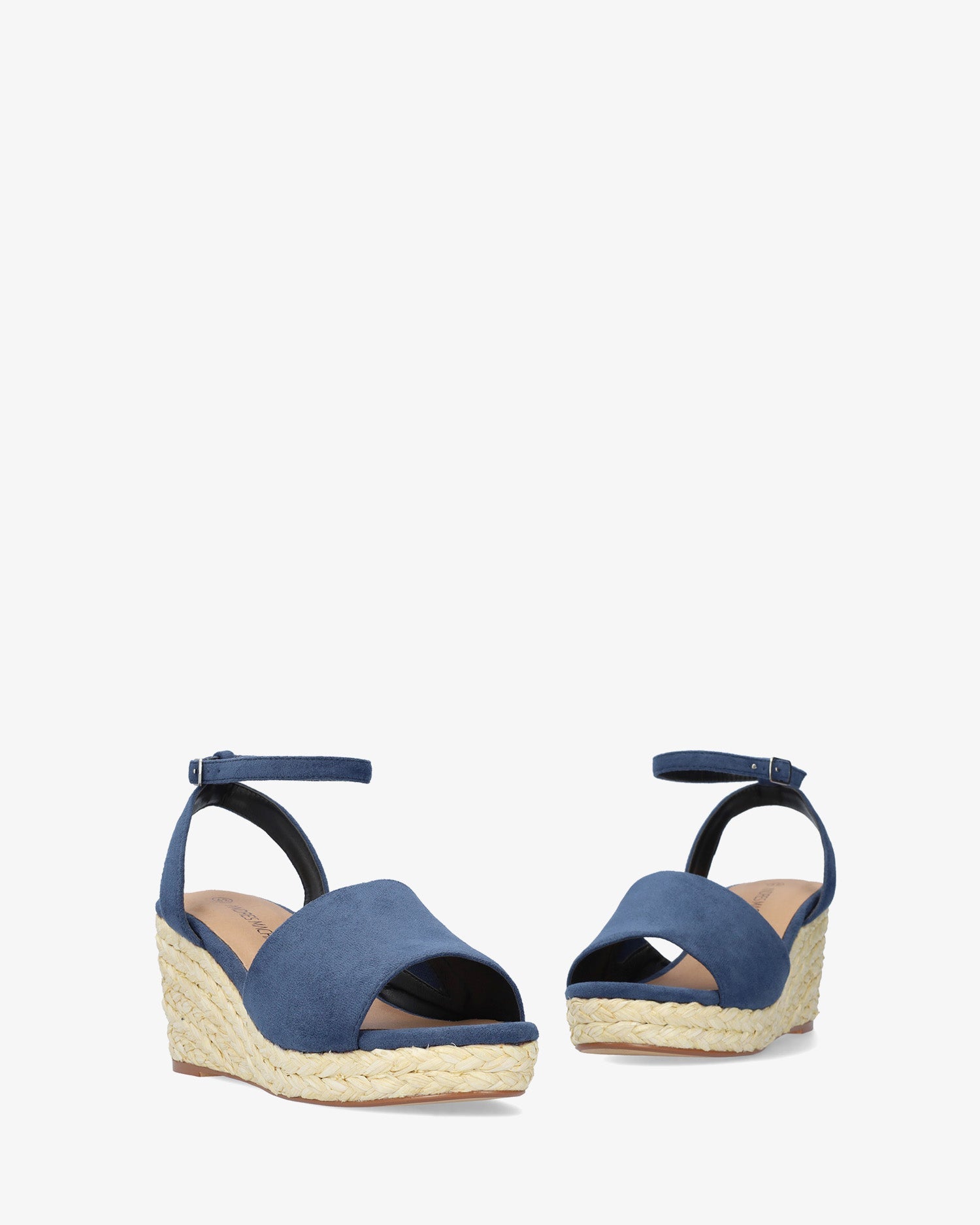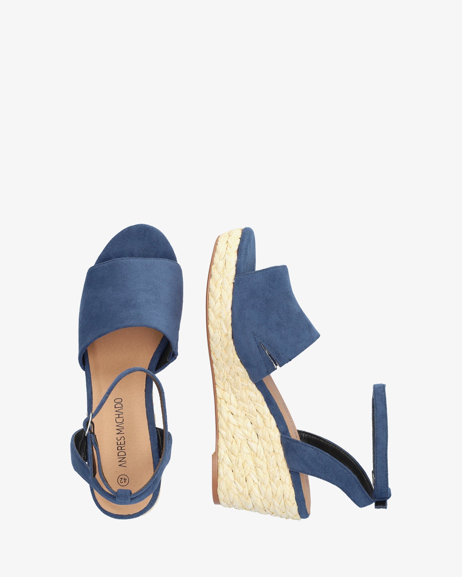 Sandalias en símil ante de color Azul con cuña. Diseño destalonado y tira ancha al tono sobre el empeine. Cierre con hebilla metálica atado alrededor del tobillo. Puntera abierta. Cuñas y plataforma delantera en yute. Cuña de 7,5 cm y plataforma de 2,5 cm para las tallas pequeñas de la 32 a la 35. Cuña de 9 cm y plataforma de 3 cm para las tallas grandes de la 42 a la 45. Este modelo puede tener una variación de medidas respecto al estandar, te recomendamos que revises los cms de la plantilla o suela interior.