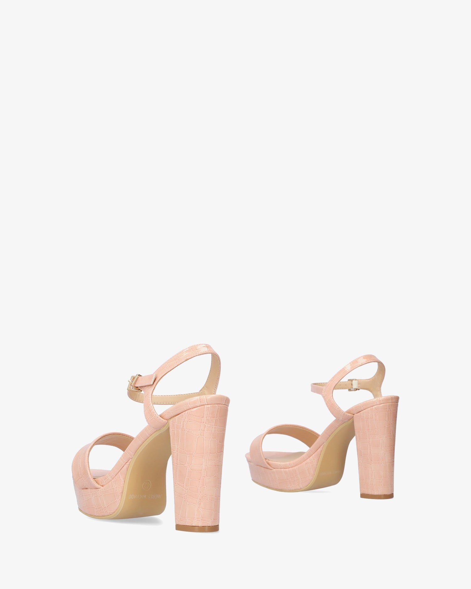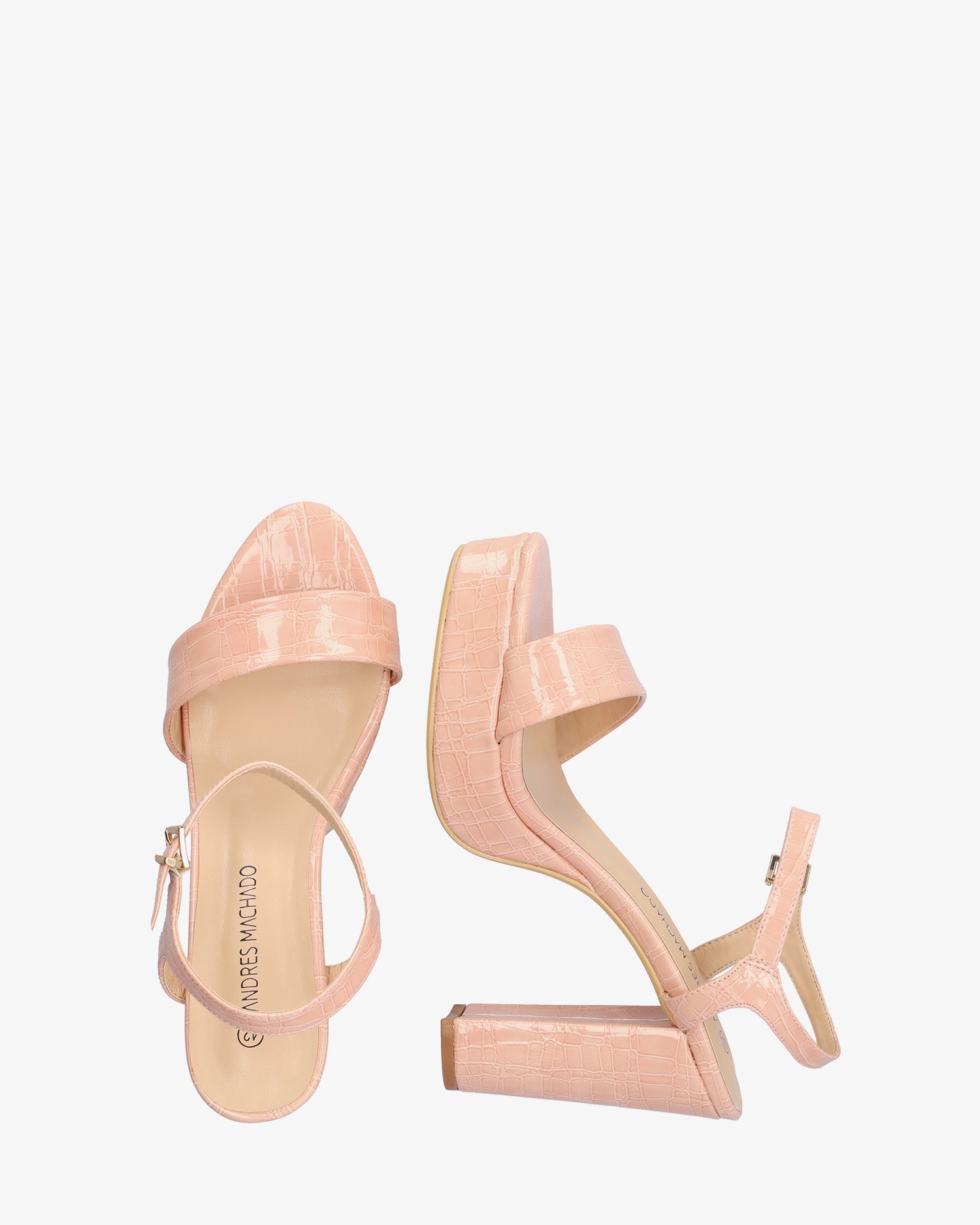 Sandalias en soft coco color Maquillaje con tacón alto ancho y plataforma. Diseño destalonado con tira ancha delantera al tono. Cierre de hebilla metálica alrededor del tobillo. Tacón de 11 cm y plataforma de 3 cm para las tallas pequeñas de la 32 a la 35. Tacón de 12,5 cm y plataforma de 3,5 cm para las tallas grandes de la 42 a la 45.