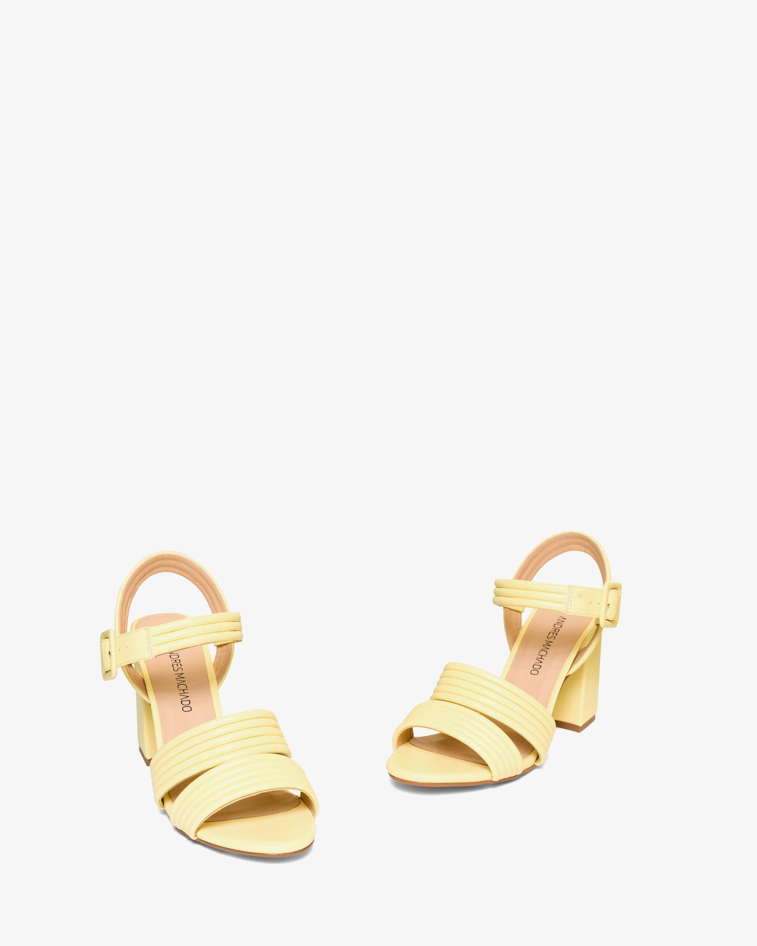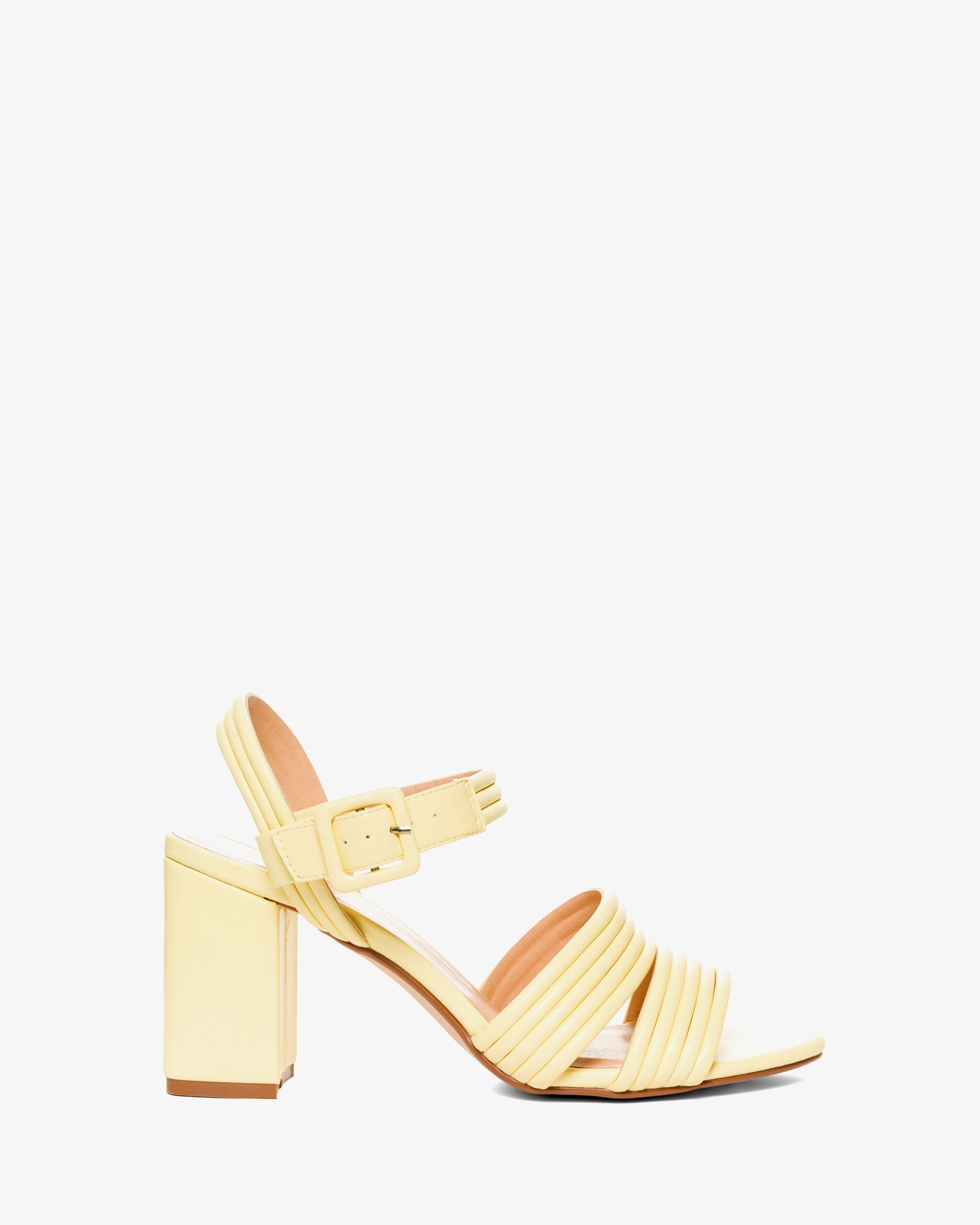 Sandalias con tacón alto cuadrado en soft color Amarillo. Diseño destalonado con dos tiras paralelas tubulares en el empeine al tono. Cierre con hebilla metálica al tobillo y con tiras tubulares. Puntera redondeada y abierta. Tacón de 8 cm para las tallas pequeñas de la 32 a la 35. Tacón de 9 cm para las tallas grandes de la 42 a la 45. Calza estrecho. Te recomendamos coger una talla más si tienes el pie ancho o estás entre dos tallas.