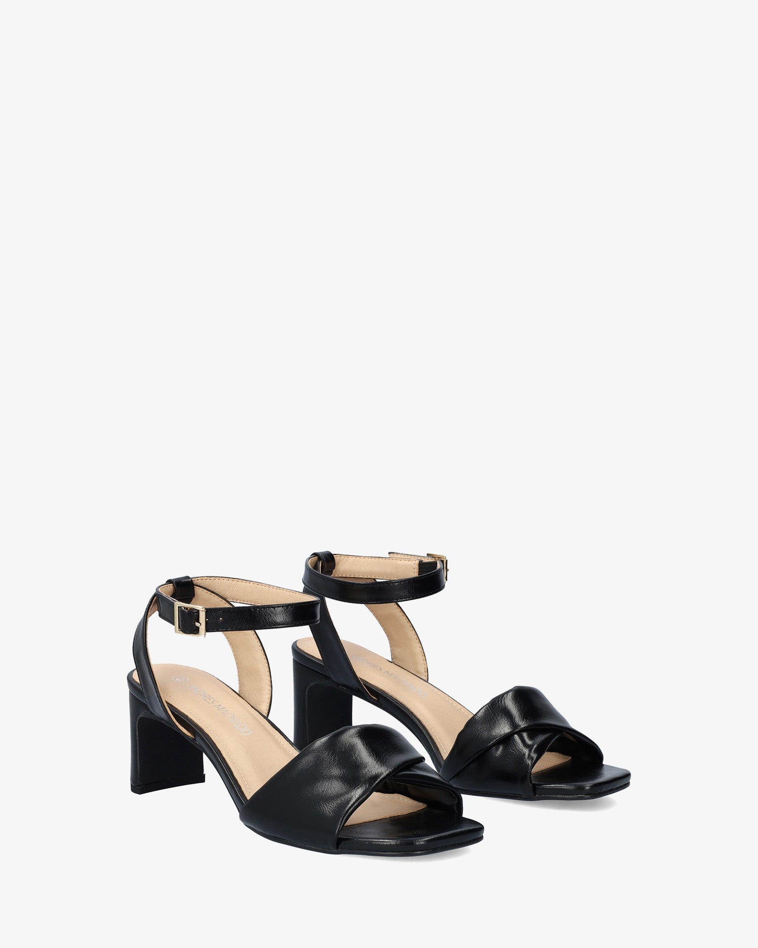 Sandalias de tacón ancho en soft color Negro. Diseño destalonado con tira ancha drapeada en la puntera al tono. Cierre con hebilla metálica al tobillo. Puntera cuadrada y abierta. Tacón de 7cm para las tallas pequeñas de la 32 a la 35. Tacón de 7,5cm para las tallas grandes de la 42 a la 45. Este modelo calza grande, se recomienda coger una talla menos de la habitual.