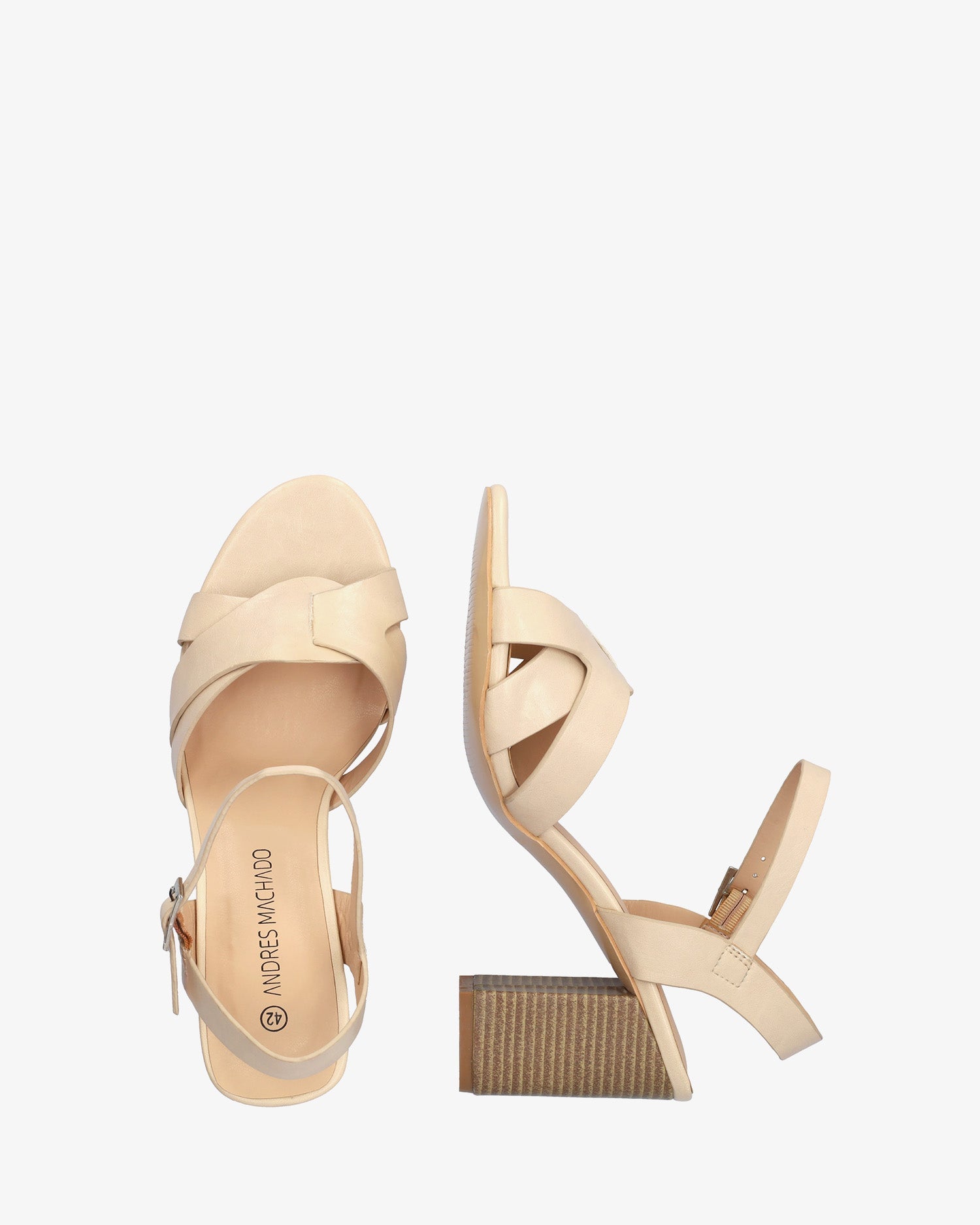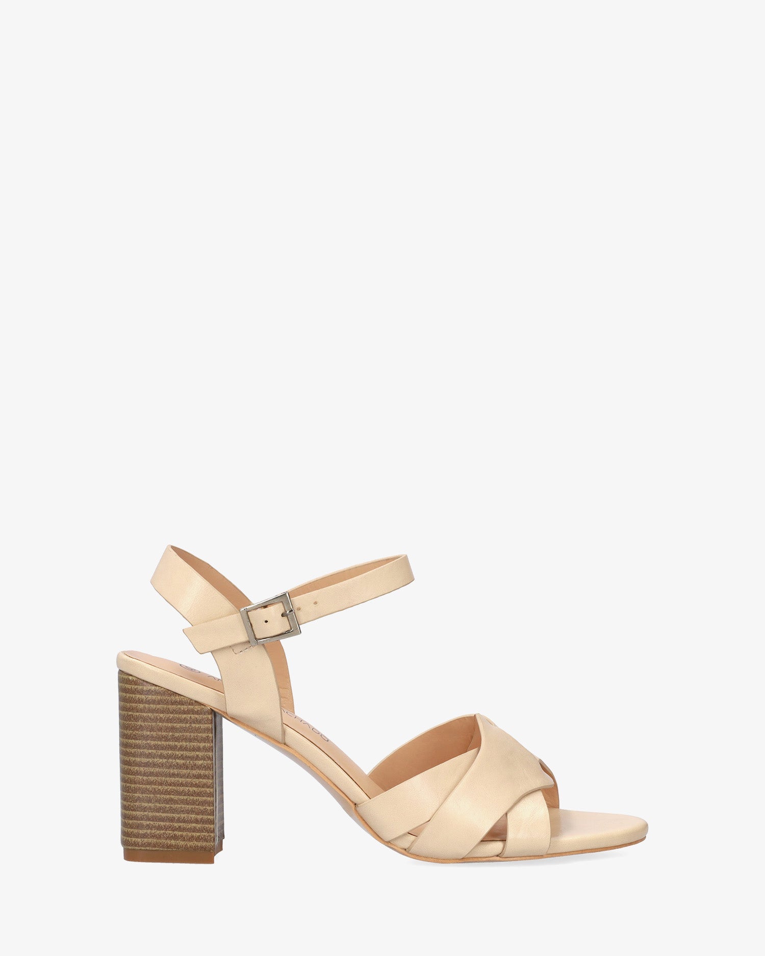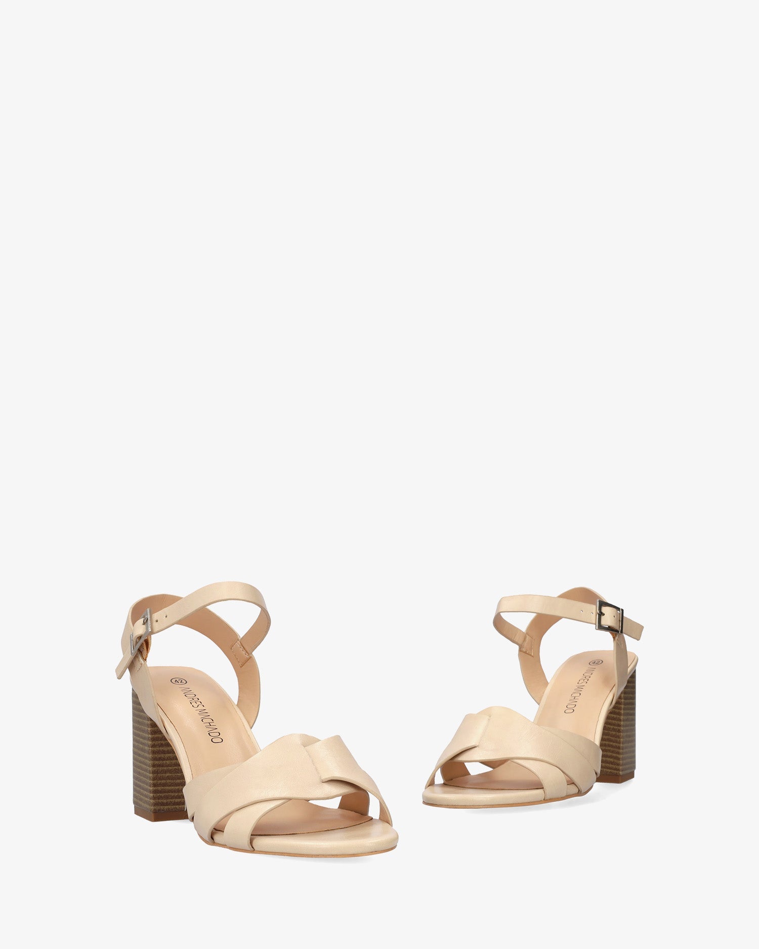 Sandalia con tacón cuadrado en soft de color Maquillaje. Diseño con detalle de tiras entrelazadas y ovaladas sobre el empeine al tono. Cierra de hebilla metálica con tira en pulsera al tono para mejor sujeción al tobillo y acabado en punta abierta redondeada. Tacón de 8,5 cm para las tallas pequeñas de la 32 a la 35. Tacón de 9,5 cm para las tallas grandes de la 42 a la 46.