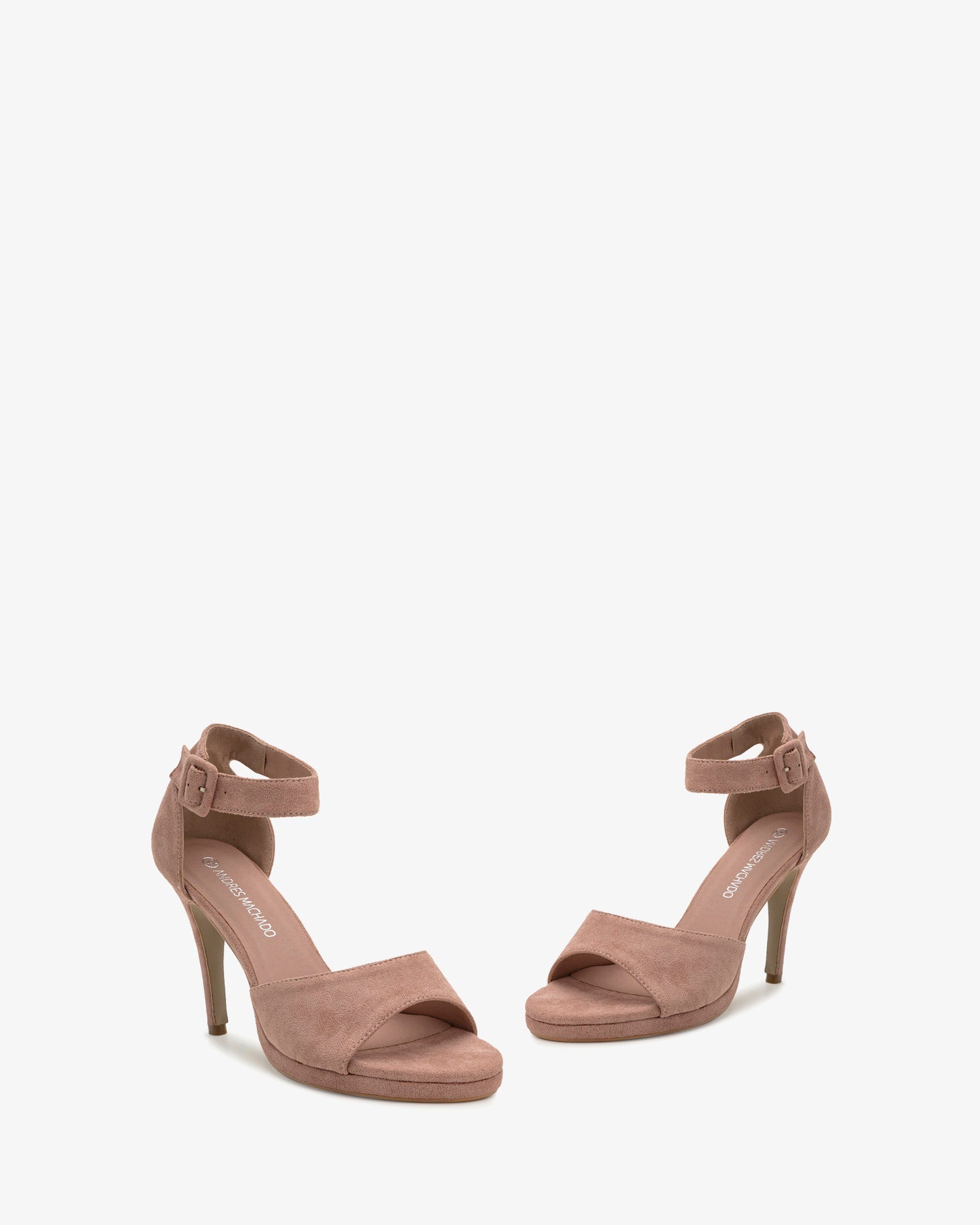 Sandalia en símil ante de color Maquillaje. Diseño de tira ancha al tono en la puntera. Cierre de hebilla con pulsera ancha al tono alrededor del tobillo. Talonera forrada al tono. Tacón fino de 8 cm y mini plataforma delantera de 1 cm ambas en símil ante de color maquillaje para las tallas pequeñas de la 32 a la 35. Tacón fino de 10,5 cm y mini plataforma delantera de 1 cm para las tallas grandes de la 42 a la 45.