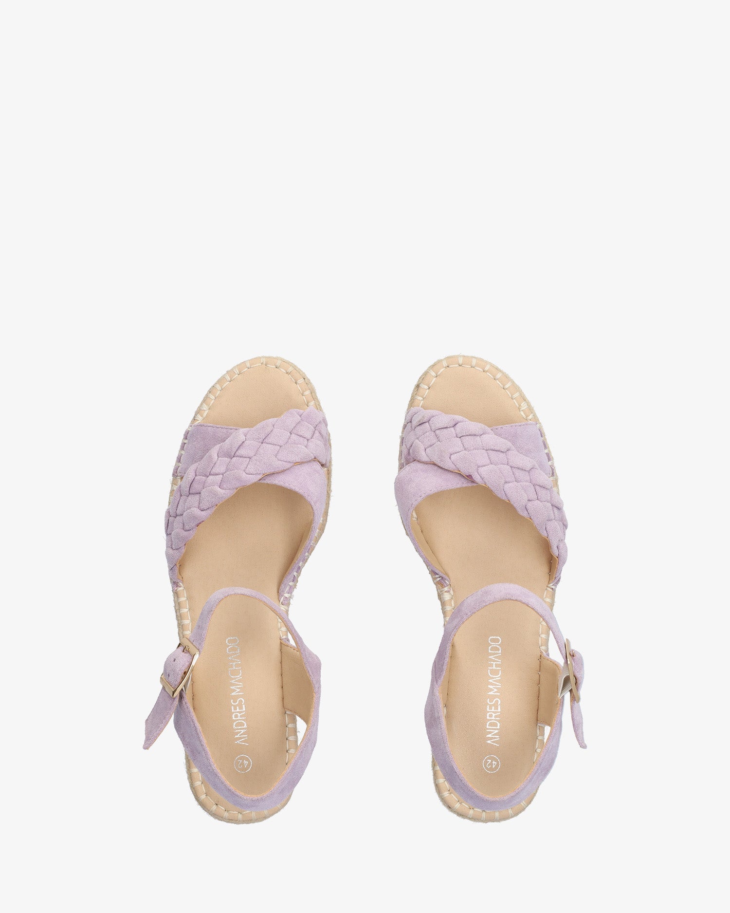 Sandalia en sí­mil ante de color Malva. Diseño destalonado con dos tiras anchas, una de ellas con detalle trenzado, cruzadas en parte delantera al tono. Puntera redondeada y abierta. Cierre de hebilla con pulsera al tono en el tobillo. Cuñas y plataforma delantera en yute. Cuña de 4,5cm y plataforma de 2cm para las tallas pequeñas de la 32 a la 35. Cuña de 5,5cm y plataforma de 2cm para las tallas grandes de la 42 a la 45.