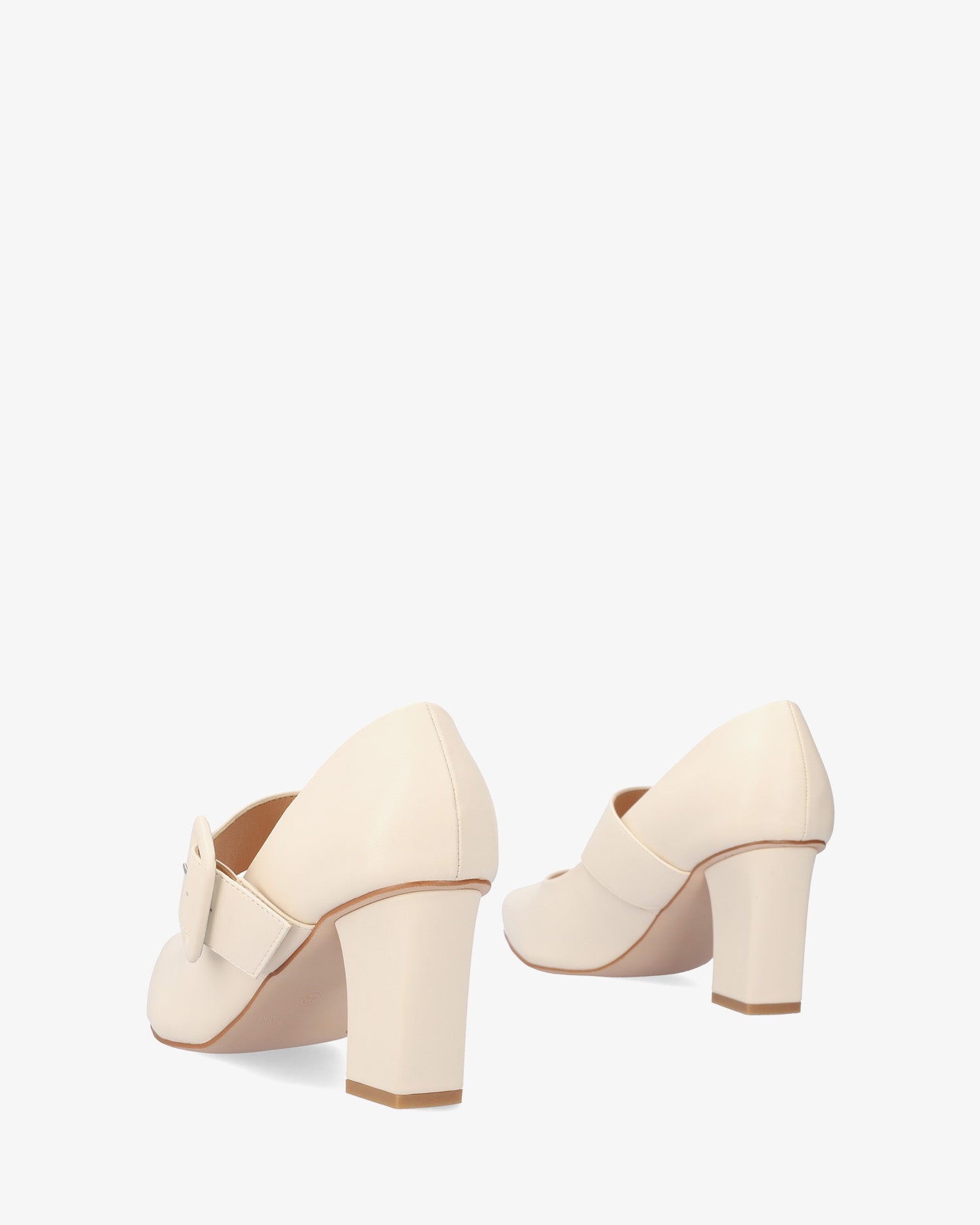 Zapato de tacón en soft de color Crema. Tira ancha sobre el empeine con cierre de hebilla forrada al tono. Horma clásica y acabado en punta fina. Tacón ancho forrado al tono de 7,5 cm de alto para las tallas pequeñas de la 32 a la 35. Tacón de 8 cm de alto para las tallas grandes de la 42 a la 45.