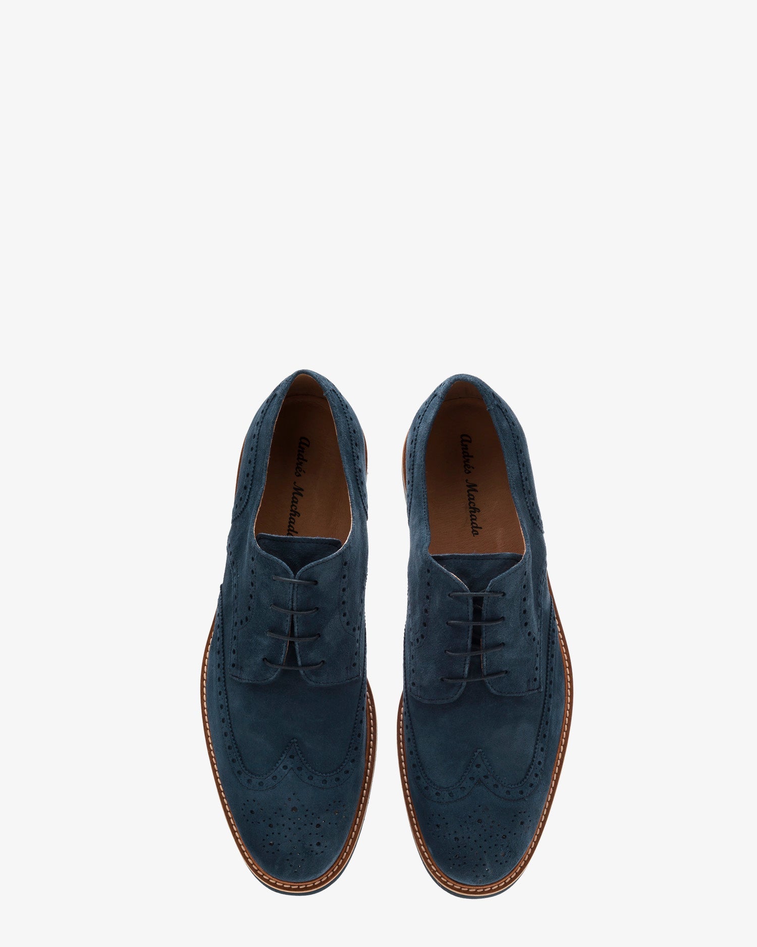 Zapatos de Caballero de Estilo Oxford en Serraje Azul con cordones al tono y picados en el corte característicos de este estilo. Forro interior de Cuero y suela Eva ligera Marino y Beige cosida. Tallas Grandes Caballero de la 47 a la 50. Fabricado en España