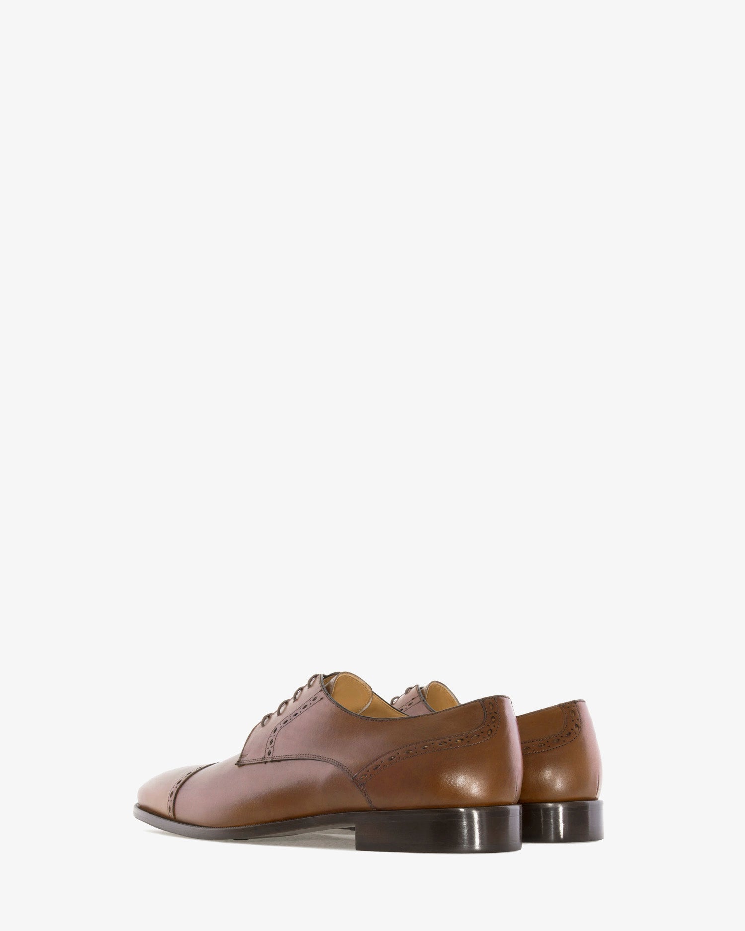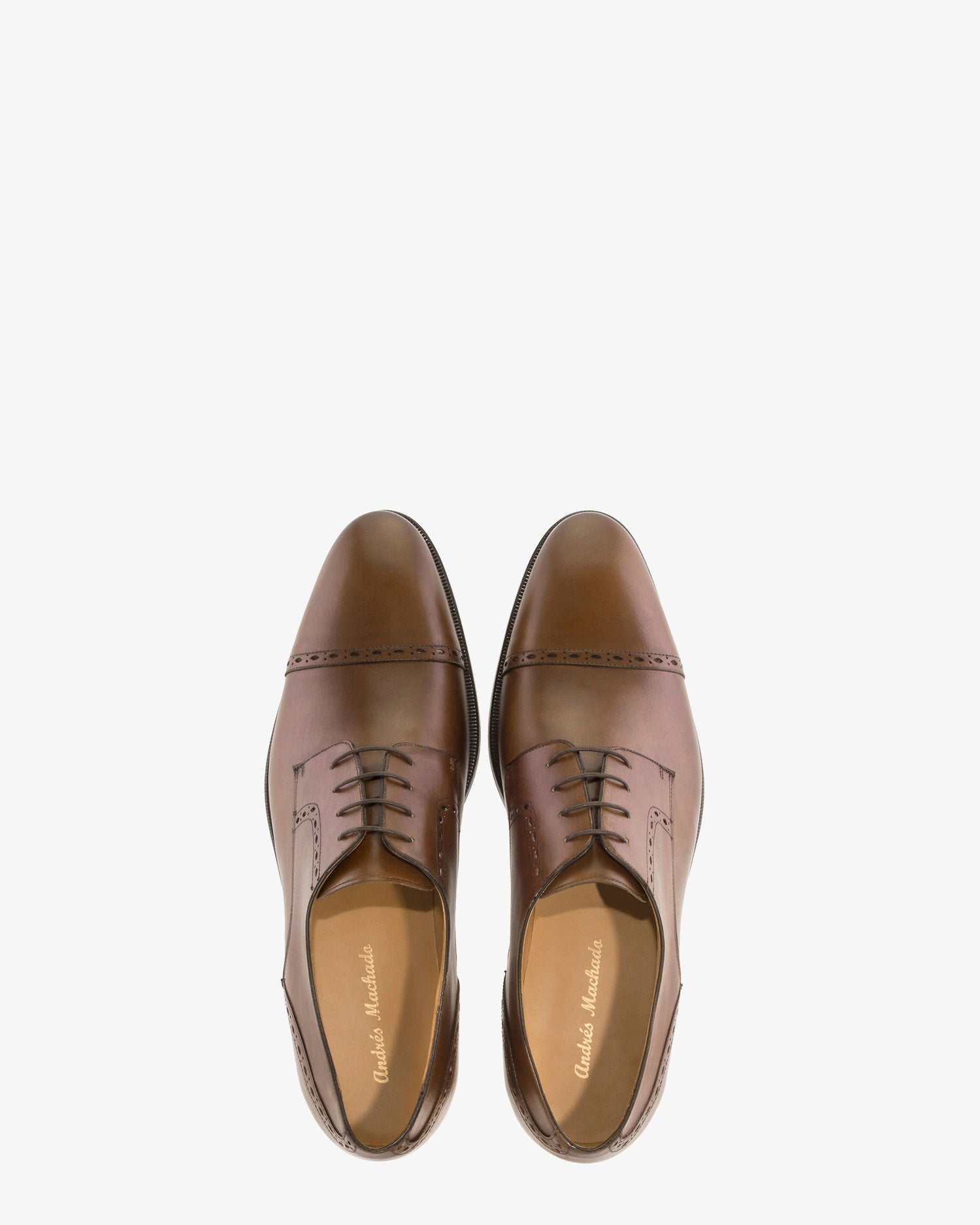 Zapato de piel en color caoba con cordones al tono. Detalle de picados en el corte. Forro interior de cuero Marrón. Suela Negra de cuero. Tallas Pequeñas de la 37 a la 39. Tallas Grandes de la 47 a la 50. Fabricación Española.