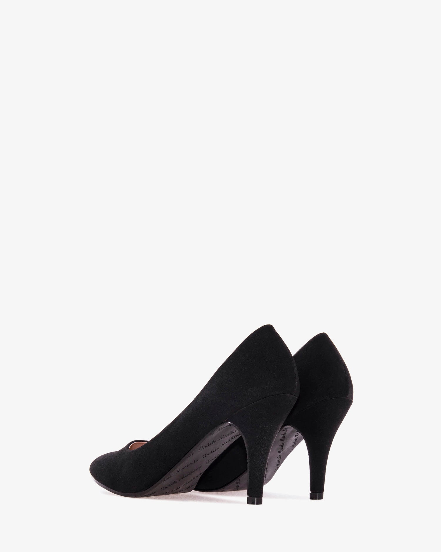 Originales Zapatos de Salón Retro en simil Nobuck Negro. Horma muy cómoda con punta redondeada. Tallas Pequeñas de la 32 a la 35 con tacón de 9 cm. Tallas Medianas de la 36 a la 41 con tacón de 9,5 cm. Tallas Grandes de la 42 a la 46 con tacón de 10 cm.Este modelo calza pequeño, se recomienda coger una talla más de la habitual.